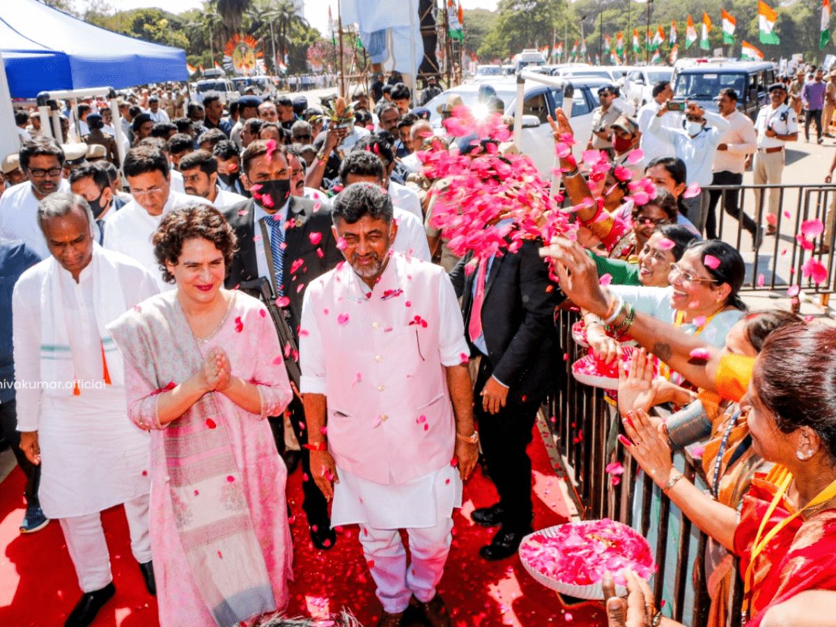 The announcement was made at a convention attended by Congress leader Priyanka Gandhi Vadra, who said Rs 24,000 a year would be directly credited to their bank accounts under “Gruha Lakshmi Yojana“, an “unconditional universal basic income”.