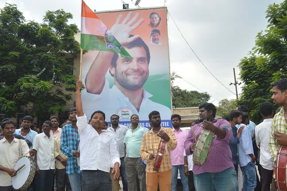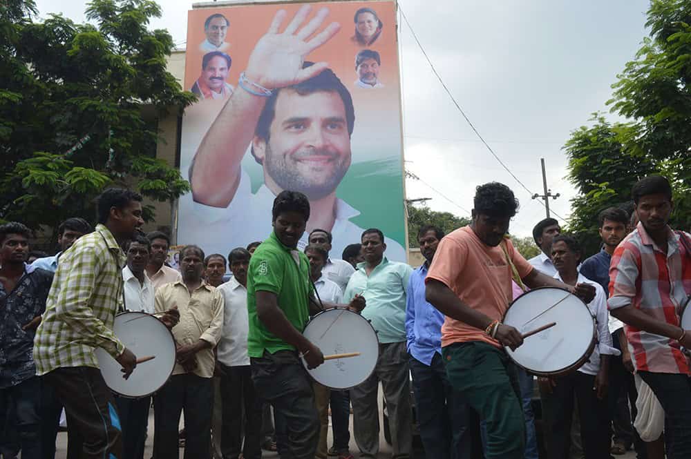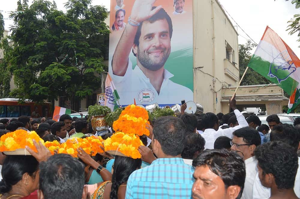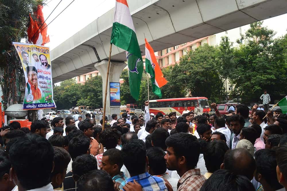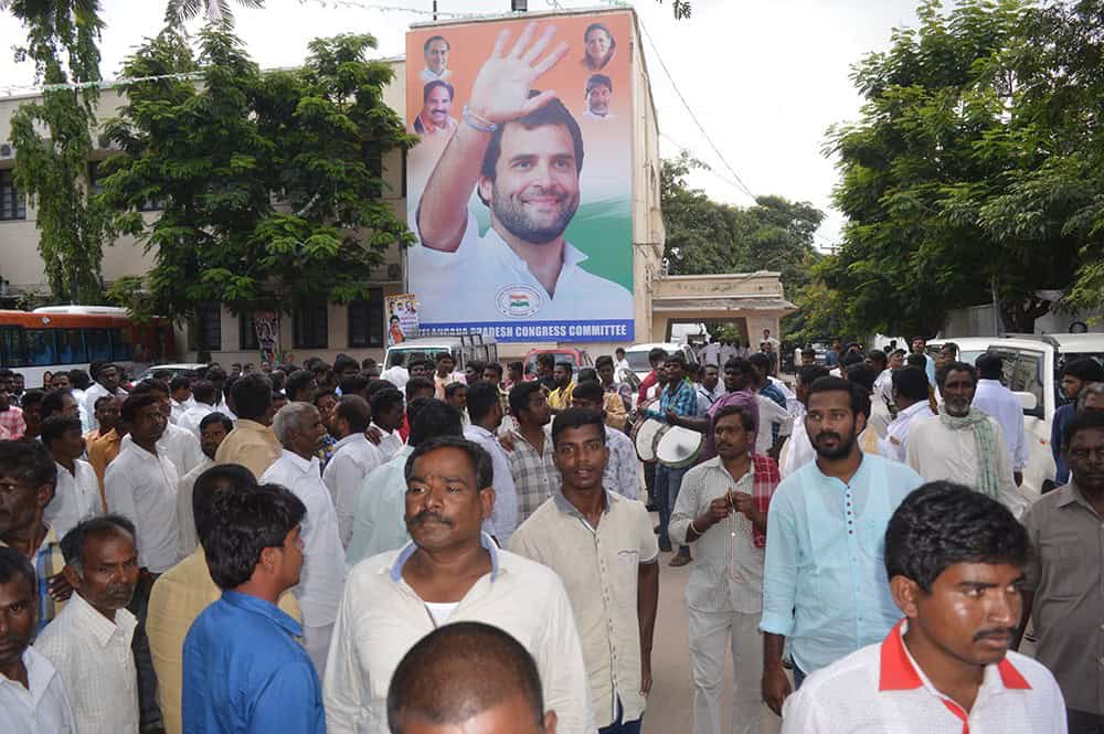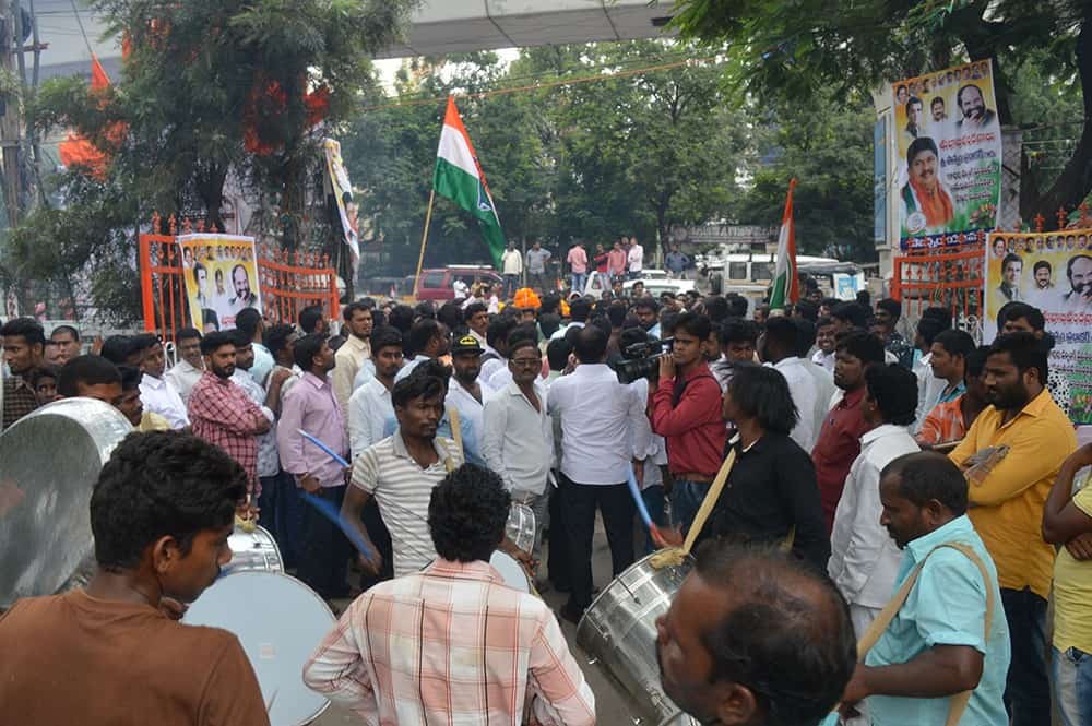 Hundreds of Telangana District Congress worker visited Congress head quarter Gandhi Bhavan in Hyderabad. (Photo: A Murali)