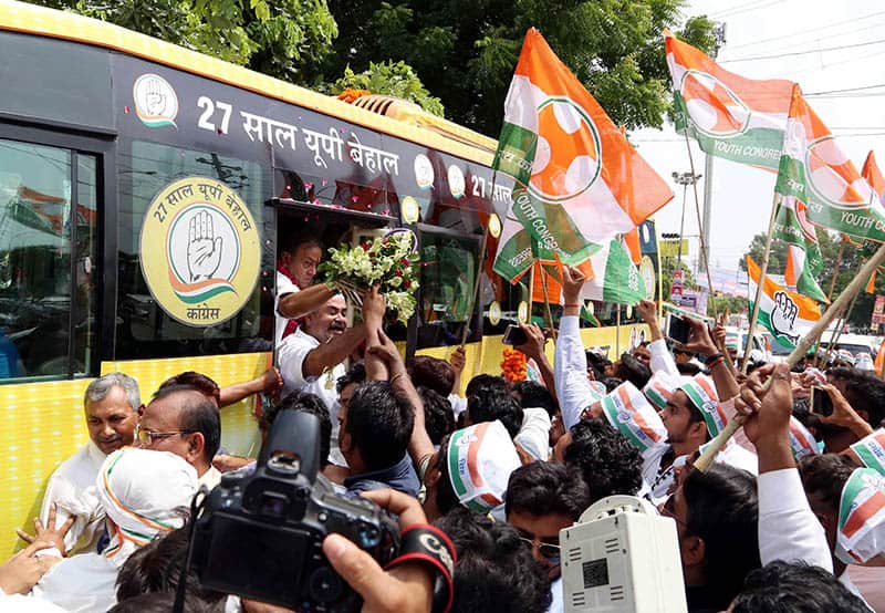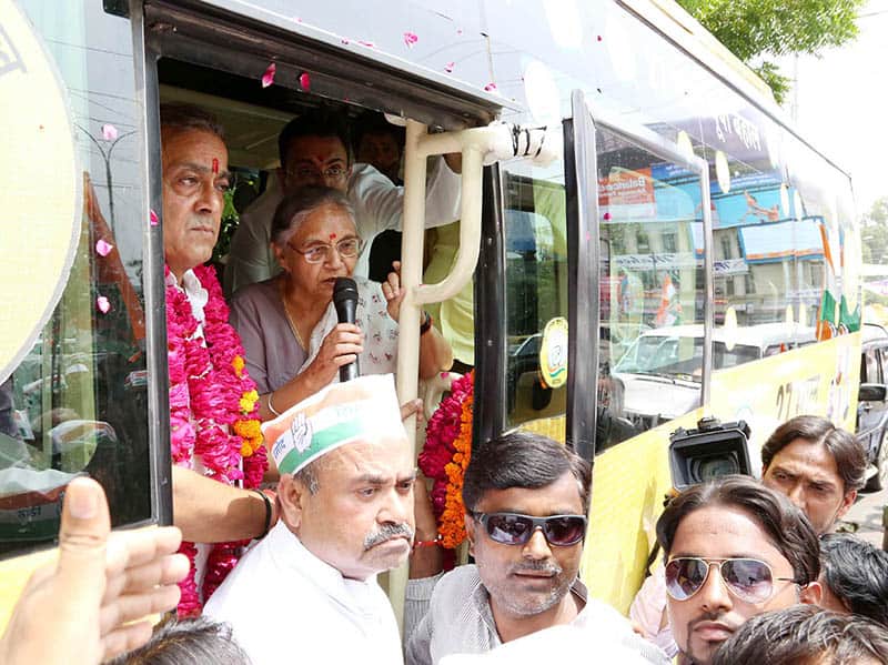 Congress party’s Uttar Pradesh Chief Ministerial candidate Sheila Dikshit and party MP Sanjay Singh during launch of the Congress Yatra, in Lucknow on Saturday. UNI PHOTO