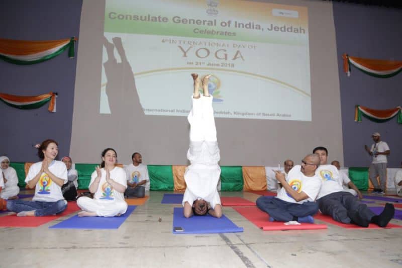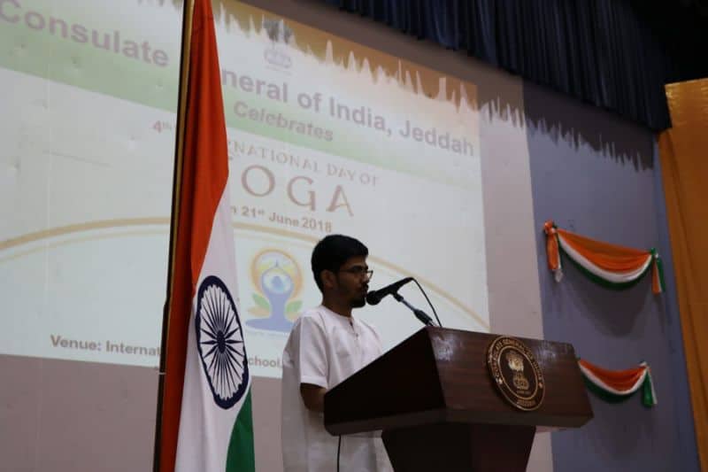 The Consulate General of India, Jeddah organised the 4th International Day of Yoga on June 21, 2018 at International Indian School, Jeddah, Kingdom of Saudi Arabia. Yoga enthusiasts including Diplomats of other countries, Saudi friends, Indian Community members, School children, Media persons etc. participated in the event.