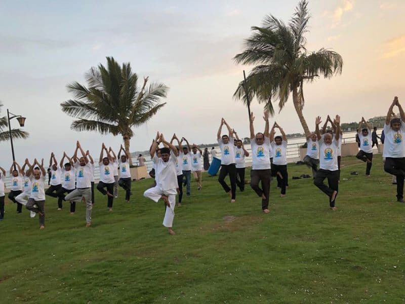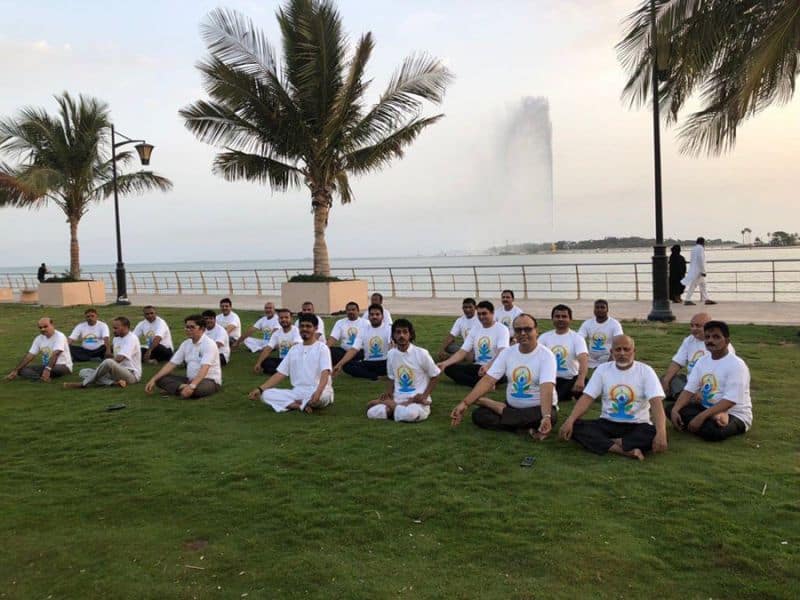 As a precursor to the main event, a Yoga Vistar was held in the Red Sea Beach in the backdrop of the iconic 300 mtr – high King Fahd Fountain, Jeddah. The event attracted the interest of several Saudis and some of them also participated with lots of enthusiasm.