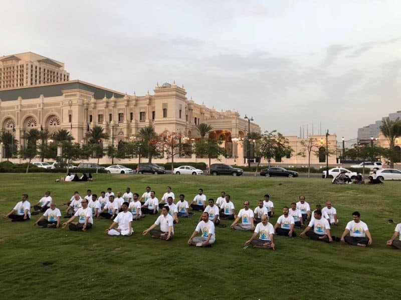 His speech was followed by that of Dr. Ala Al Shareef, a Community Medicine Practitioner on her “experience of Yoga”. Thereafter, A Mass yoga practice session was conducted under the supervision of a Yoga Guru from Arab Yoga Foundation that included an overview of the benefits of yoga, demonstration of the important Asanas and postures. The programme was properly arranged to spread awareness of yoga in all aspects, both for the beginners as well as the practitioners. The programme lasted for about two and half hours.