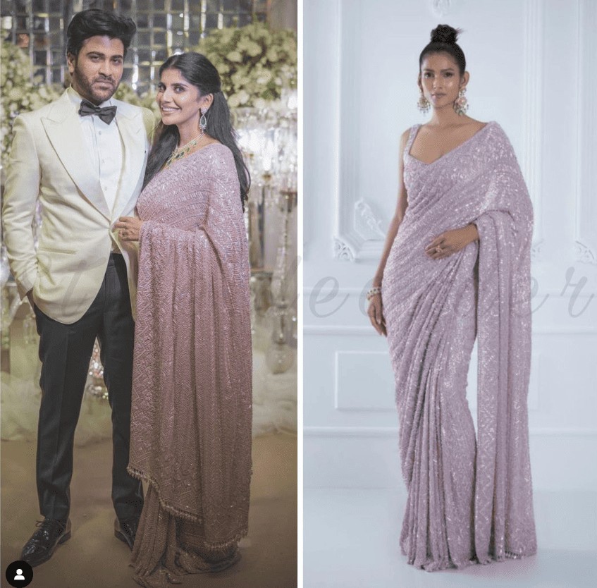 Rakshitha Reddy, on the other hand, captured everyone’s attention with her grace and beauty. She wore a stunning Lilac Heavy Encrusted Saree Set by Manish Malhotra, which is estimated to be worth Rs. 3,25,000. The intricately embellished saree set complemented her radiant personality perfectly and added a touch of opulence to the reception.