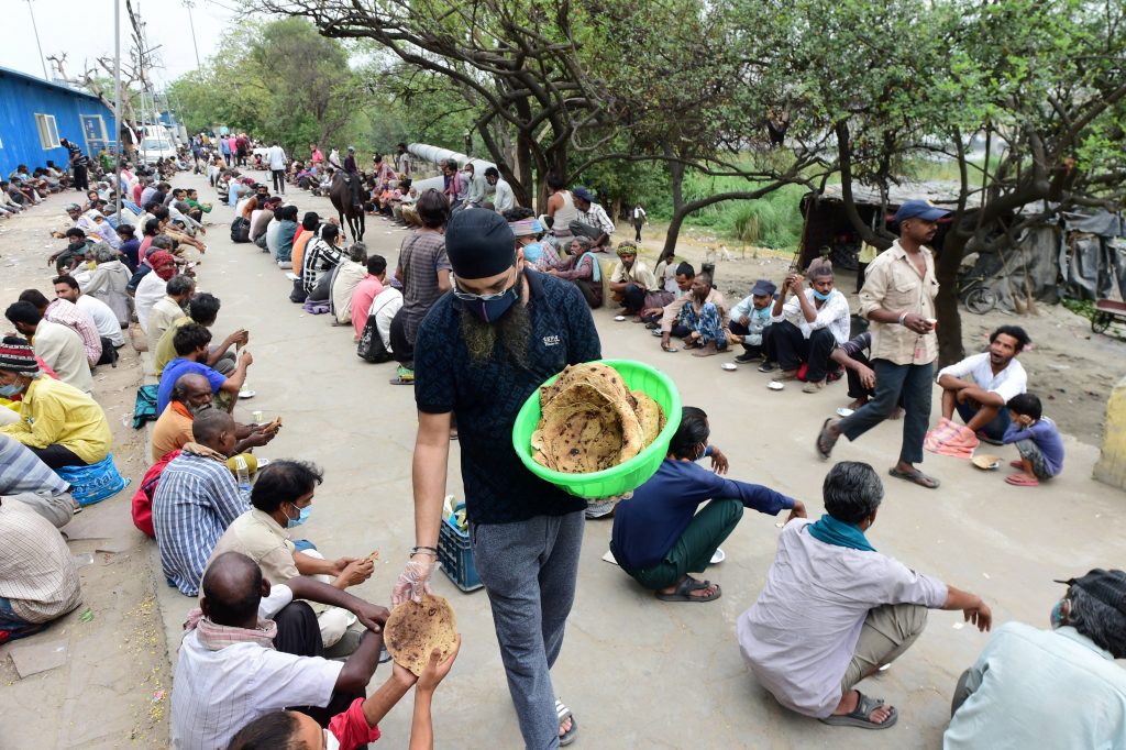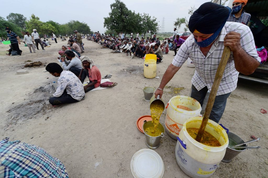 New Delhi: Homeless and migrant labourers affected by the Covid-19 lockdown being served cooked food, in New Delhi, Tuesday, May 18, 2021. (PTI Photo/Kamal Kishore)