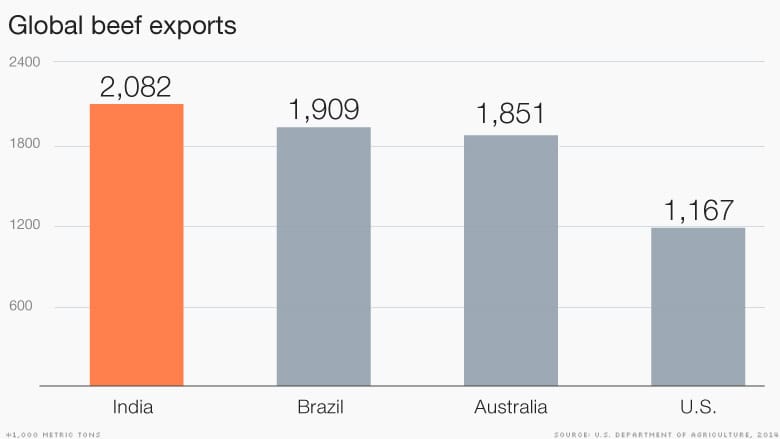 New Delhi: On one side several innocent people are being beaten to death in the name of cow slaughter or smuggling, on the other hand, India has become no 1 beef exporter during the rule of Modi led BJP government. According to the latest figures of World Beef Rating, India is the number one beef, exporter.