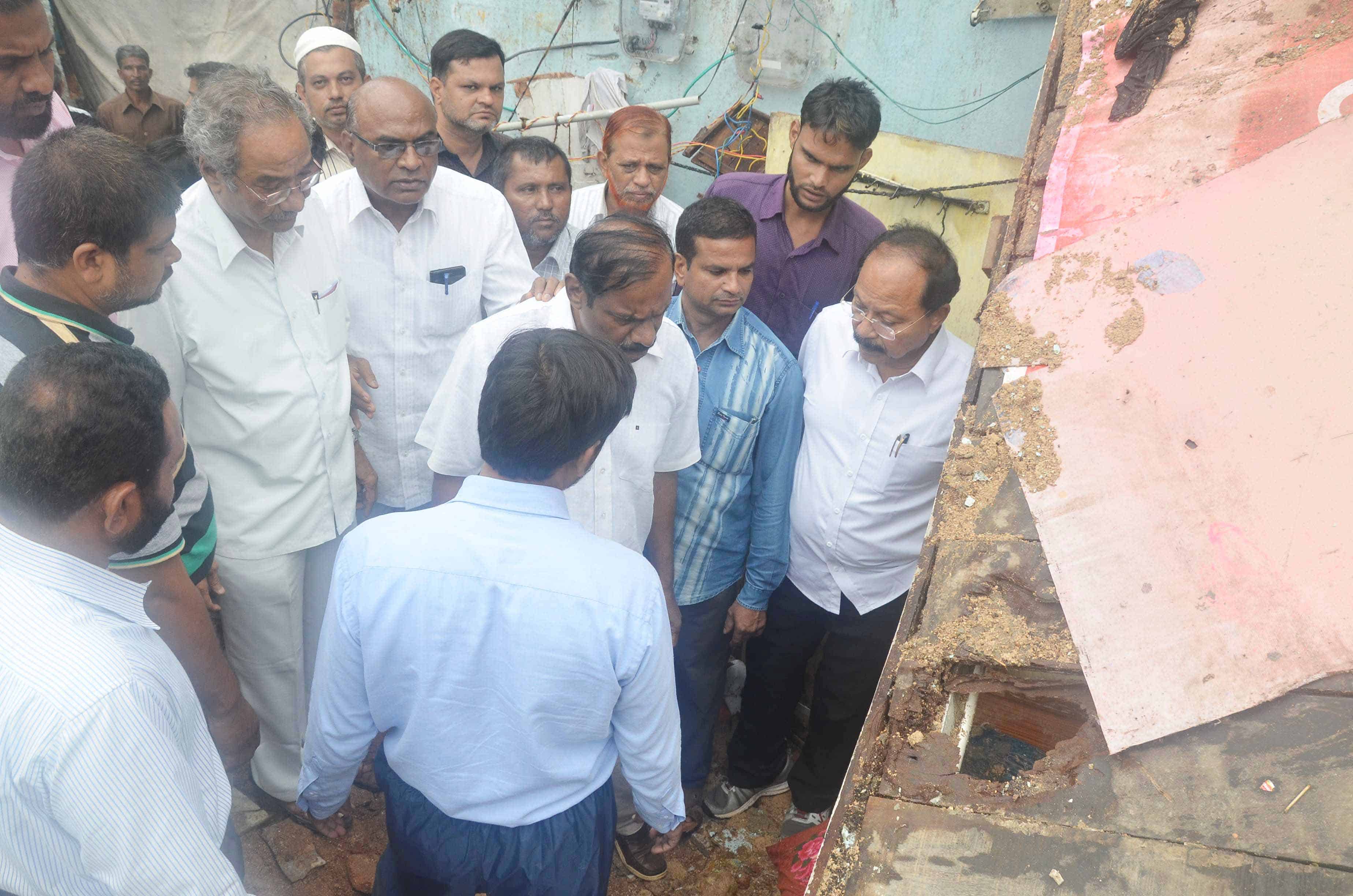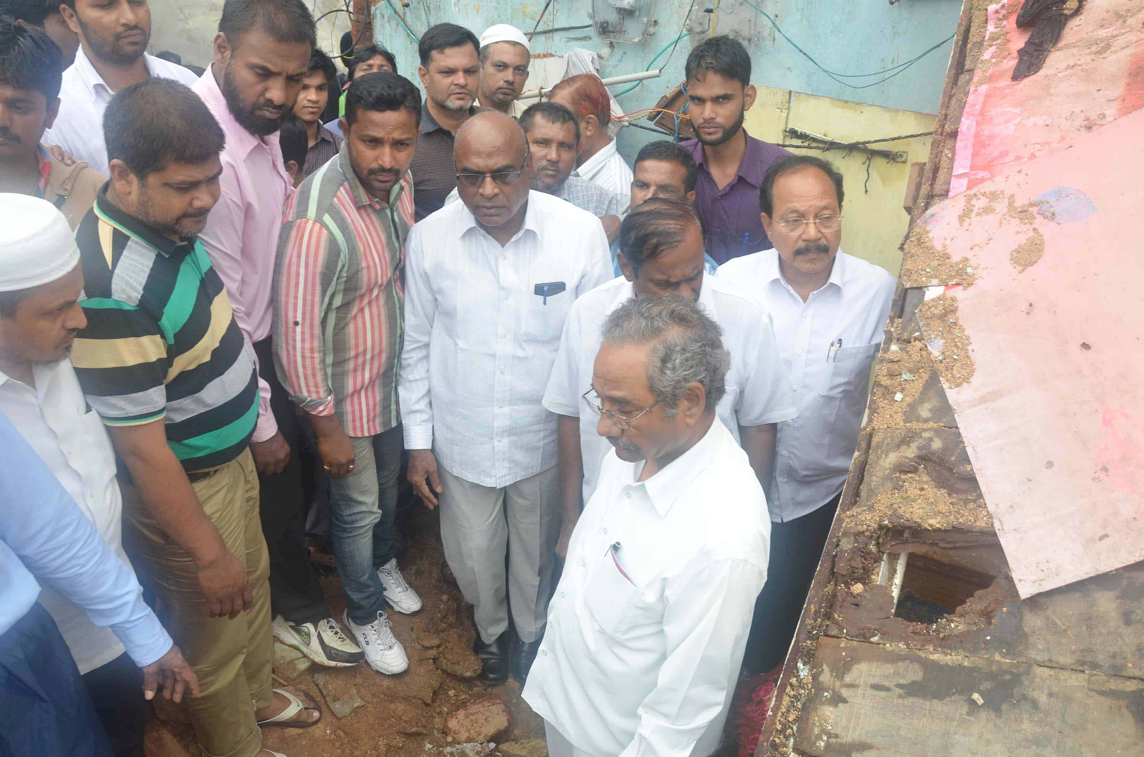 CPI delegation led by CPI State Secretary Chada Venkat Reddy visit bholakpure after house collapsed incident. Ex-MP Syed Azeez Pasha, Pala Venakat Reddy, Dr Sudhakar and others can also be seen. (Photo: Zabi)