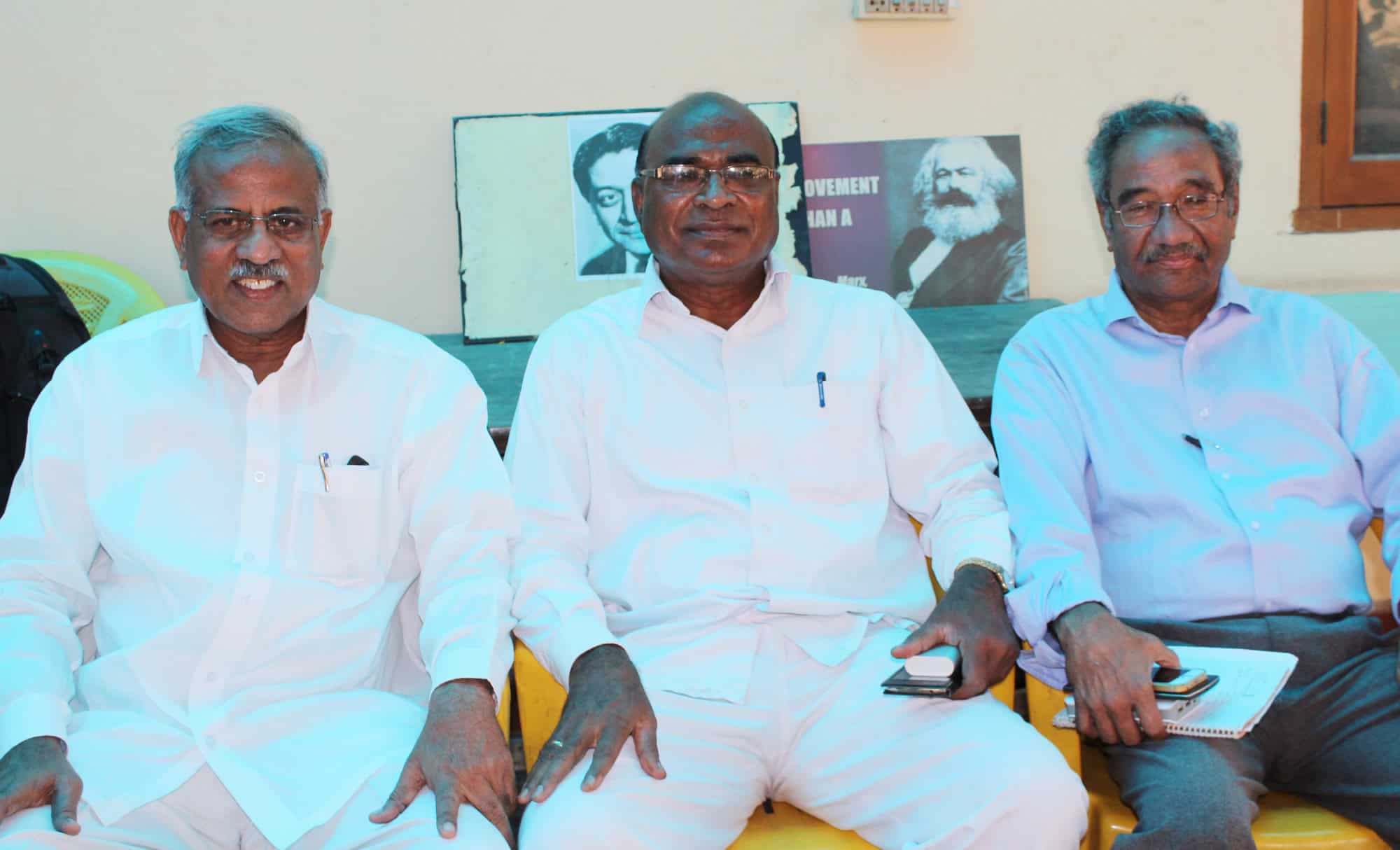 CPI Telangana State Secretary Chada Venkat Reddy demands CBI probe in Nayeem Encounter Case during a press conference in Makhdoom Bhavan. CPI National Executive Member Syed Azeez Pasha and Pala Venkat Reddy can also be seen. (Photo: Zabi)