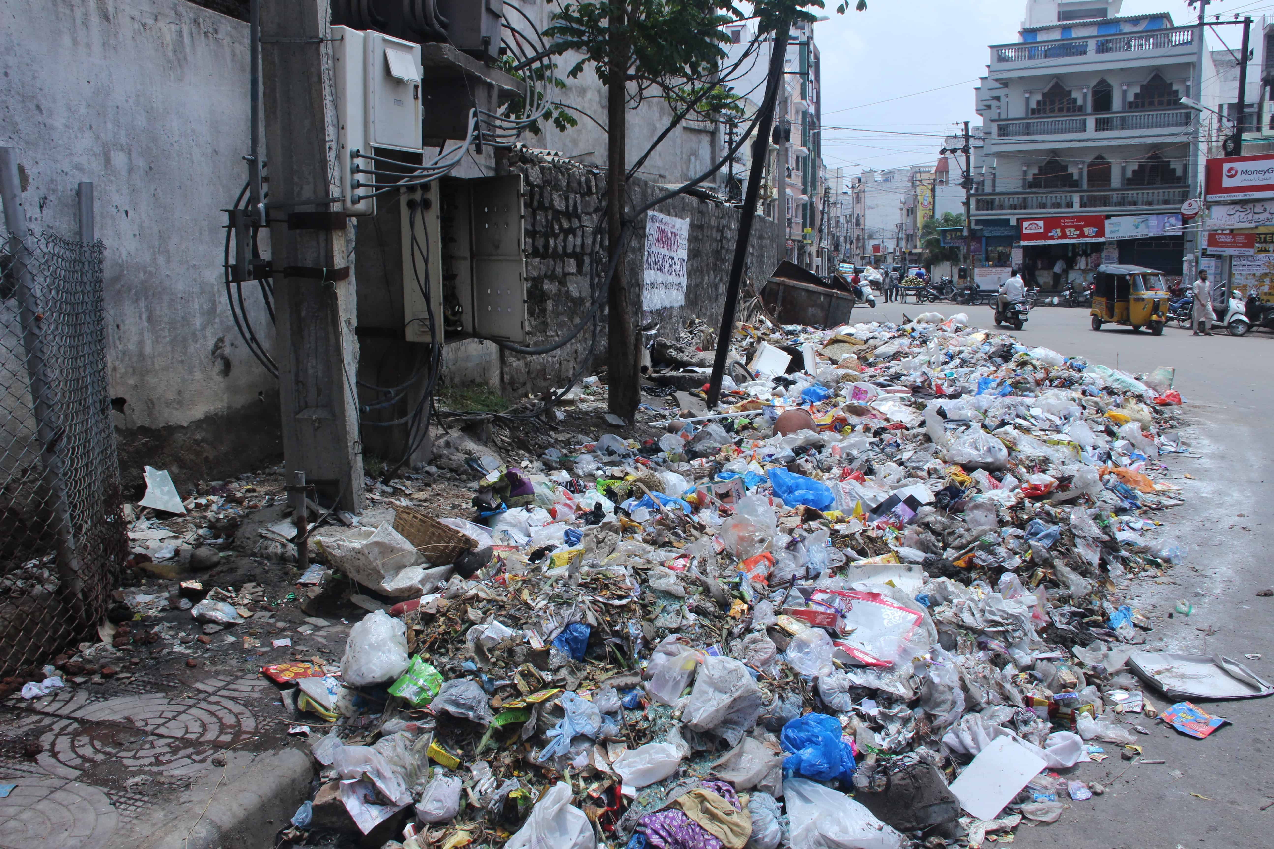 A heap of garbage can be seen in Mallepally where the residents said that civic employees are not removing the garbage for quite some time.Photo:Laeeq