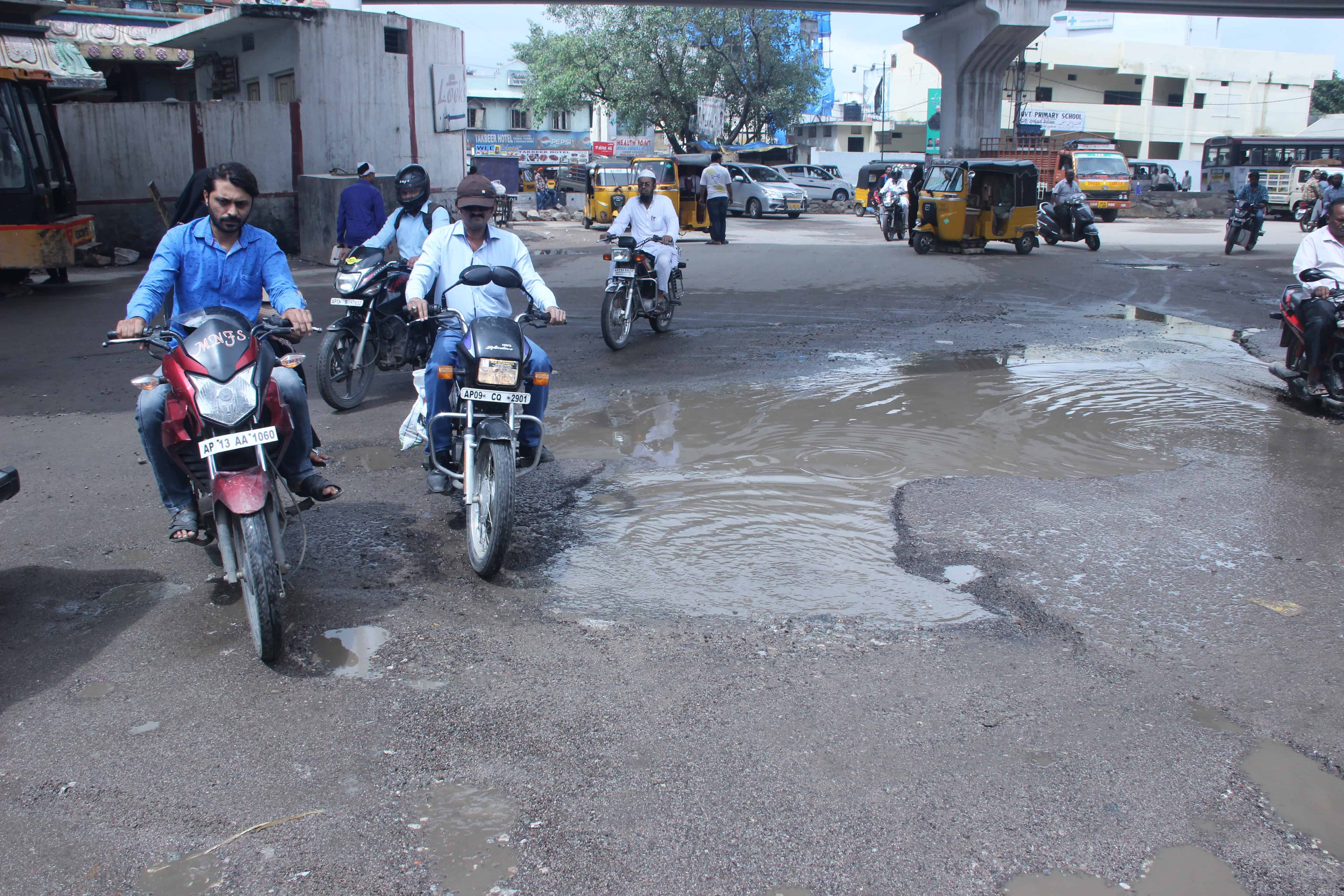 Criminal negligence August 6, 2016 by laeeq Pot holes on Toli Chowki Road are threat pedestrians and vehicles as they need immediate repair by GHMC. Photo:Laeeq