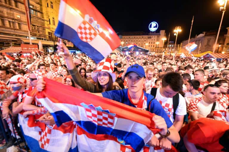 “Hrvatska, Hrvatska!” (Croatia) the fans chanted as team coach Zlatko Dalic and the players stepped on an improvised stage in front of a giant screen under a shower of red and white confetti.