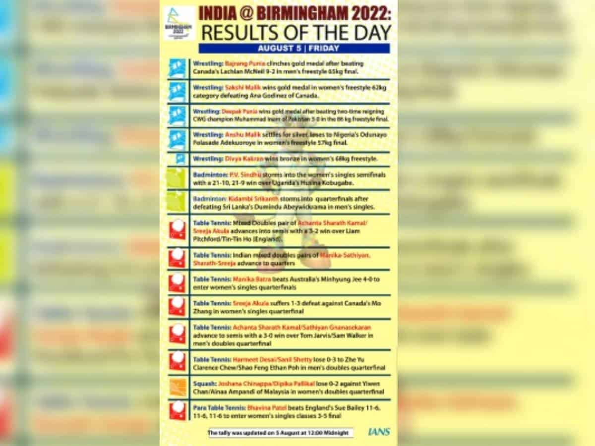 This took India’s tally to 9 gold, 8 silver and 9 bronze medals for a total of 26 medals so far in Birmingham.