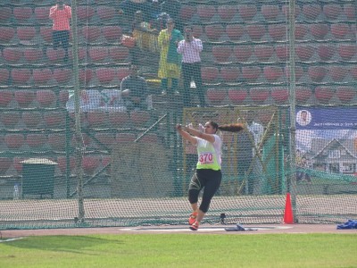 Women Discus throw: 1. Grima (Haryana) 46.67m; 2. Pooja (Haryana) 44.54; 3. Neetika Verma (Uttar Pradesh) 43.90.