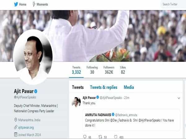Mumbai : Nationalist Congress Party (NCP) leader Ajit Pawar on Sunday updated his current designation of Deputy Chief Minister of Maharashtra on his Twitter bio.