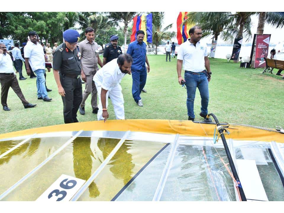 Overall it was a challenging day for sailors to sail. Sports minister of Telangana Shri Virusanolla Srinivas Goud Minister for Prohibition and excise, Sports and youth Services, Tourism and Culture and Archaeology visited the venue to see the progress of national level sailing event Happening in the state.