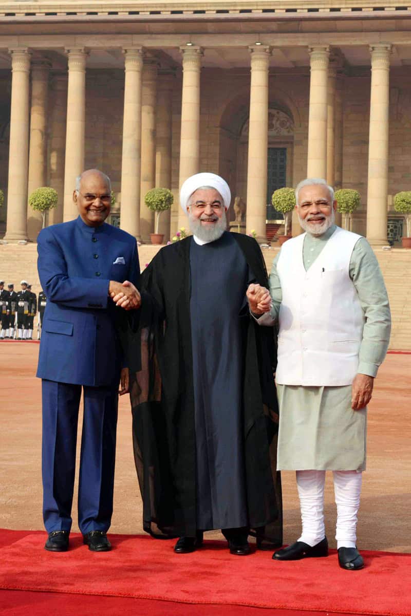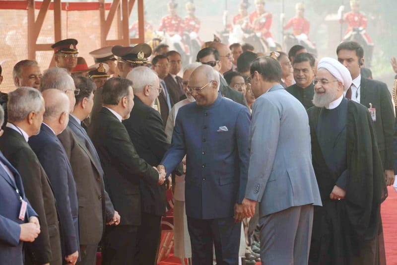 New Delhi [India]: Iran President Hassan Rouhani inspected a guard of honour at the Rashtrapati Bhawan here on Saturday.