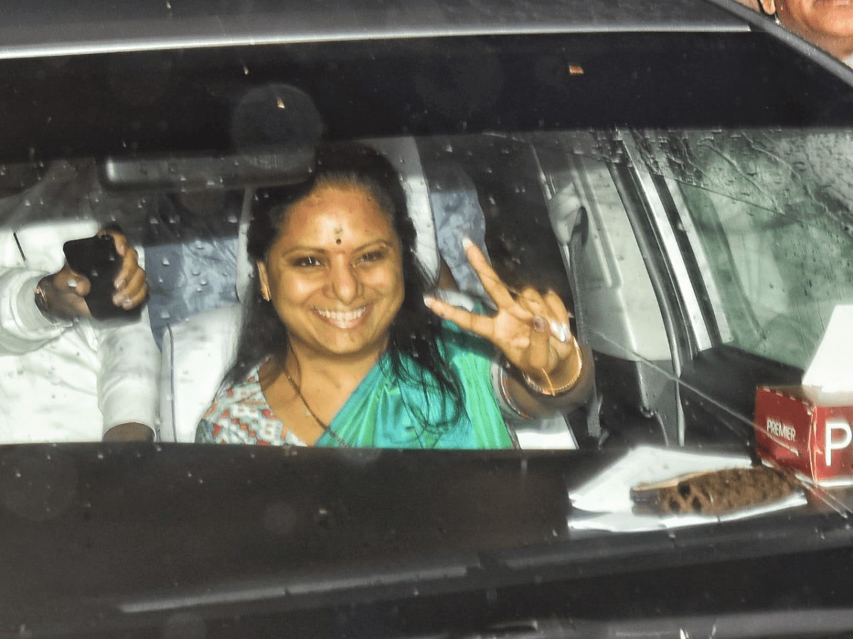 While getting inside her car, Kavitha waved a victory sign to her supporters who had gathered outside the ED office.