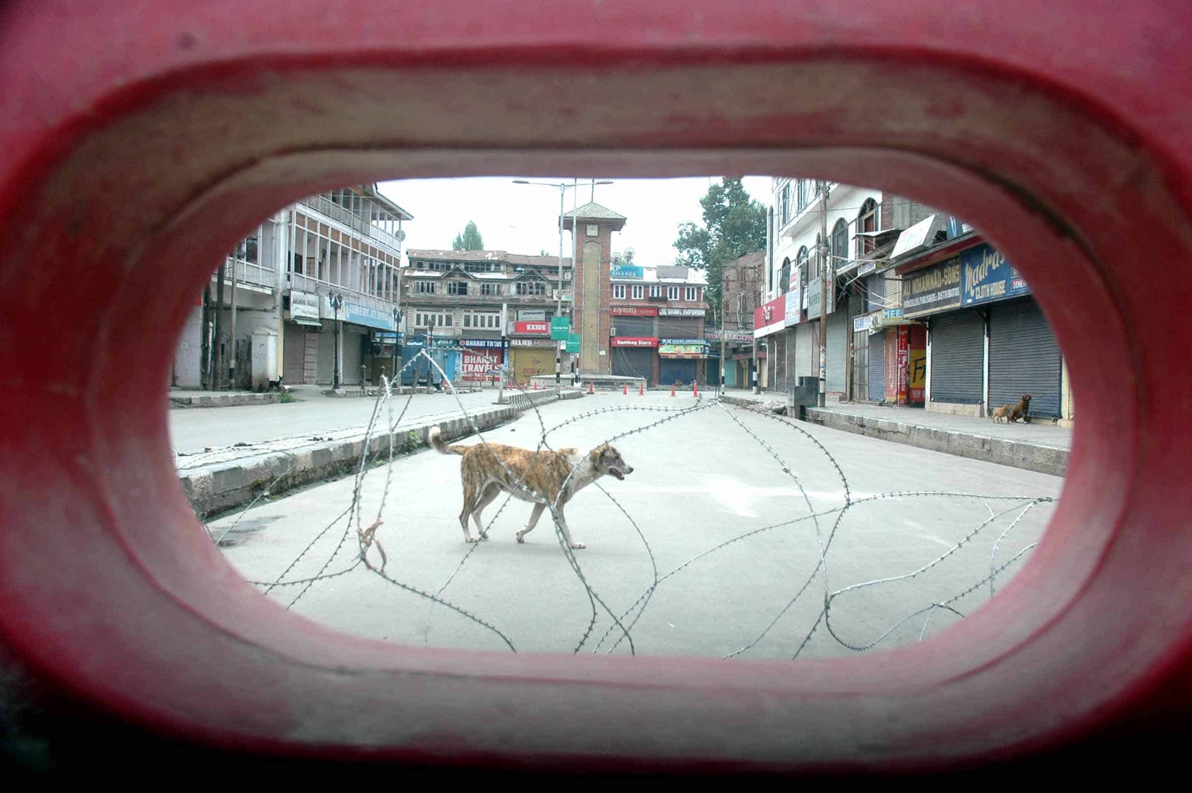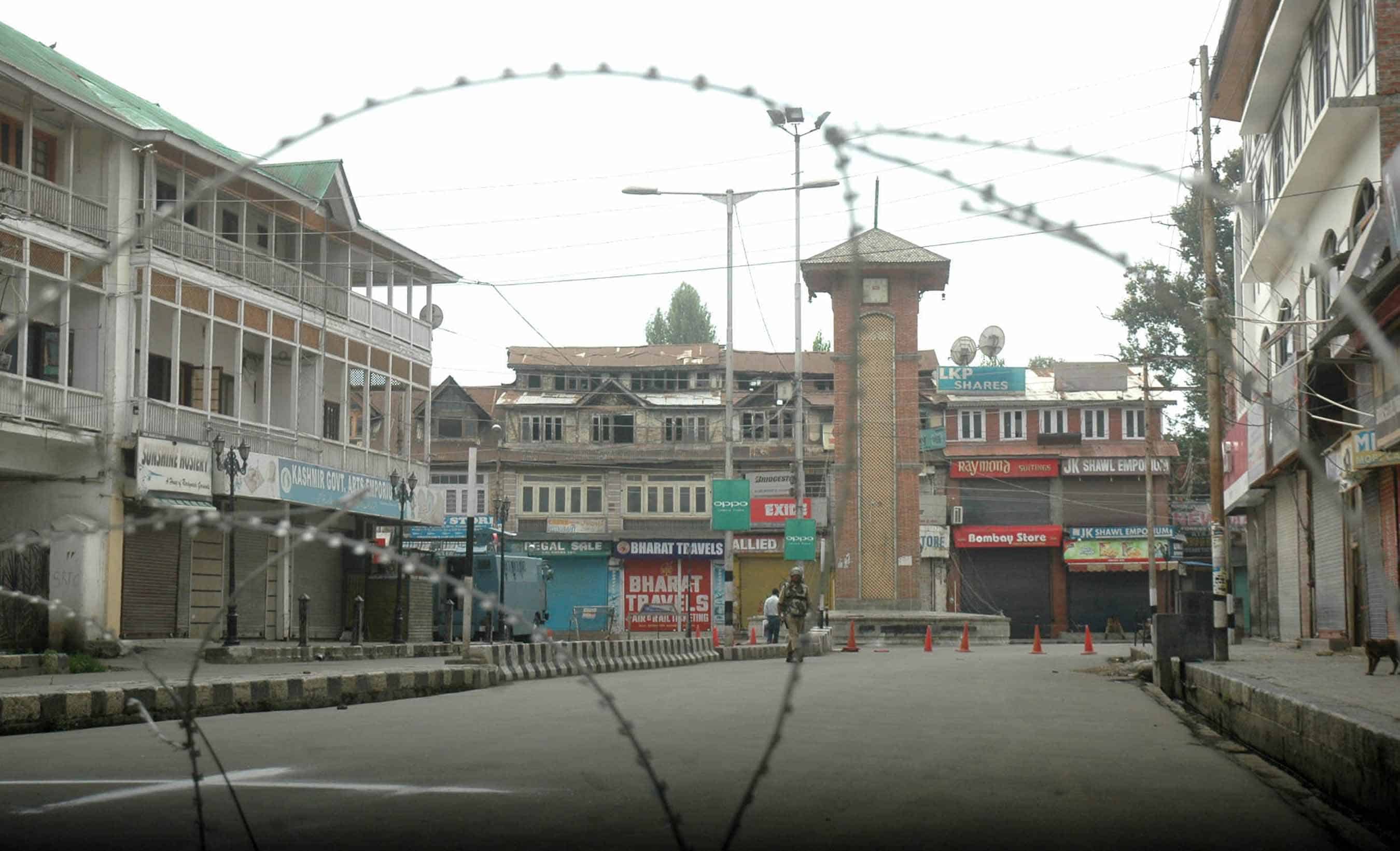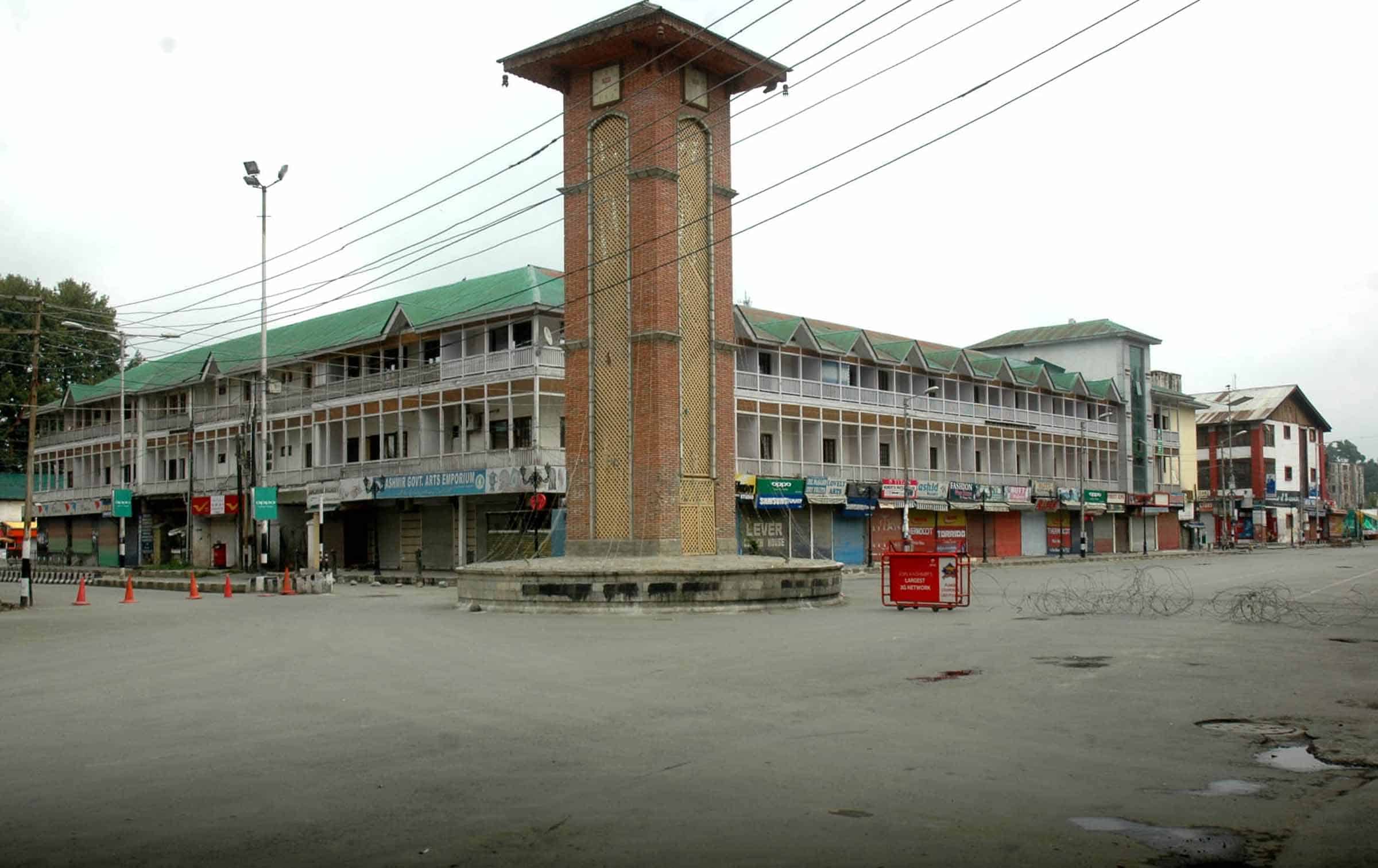 Deserted view of Lal chowk in Srinagar as strick curfew imposed on the 49th day on Friday.UNI PHOTO