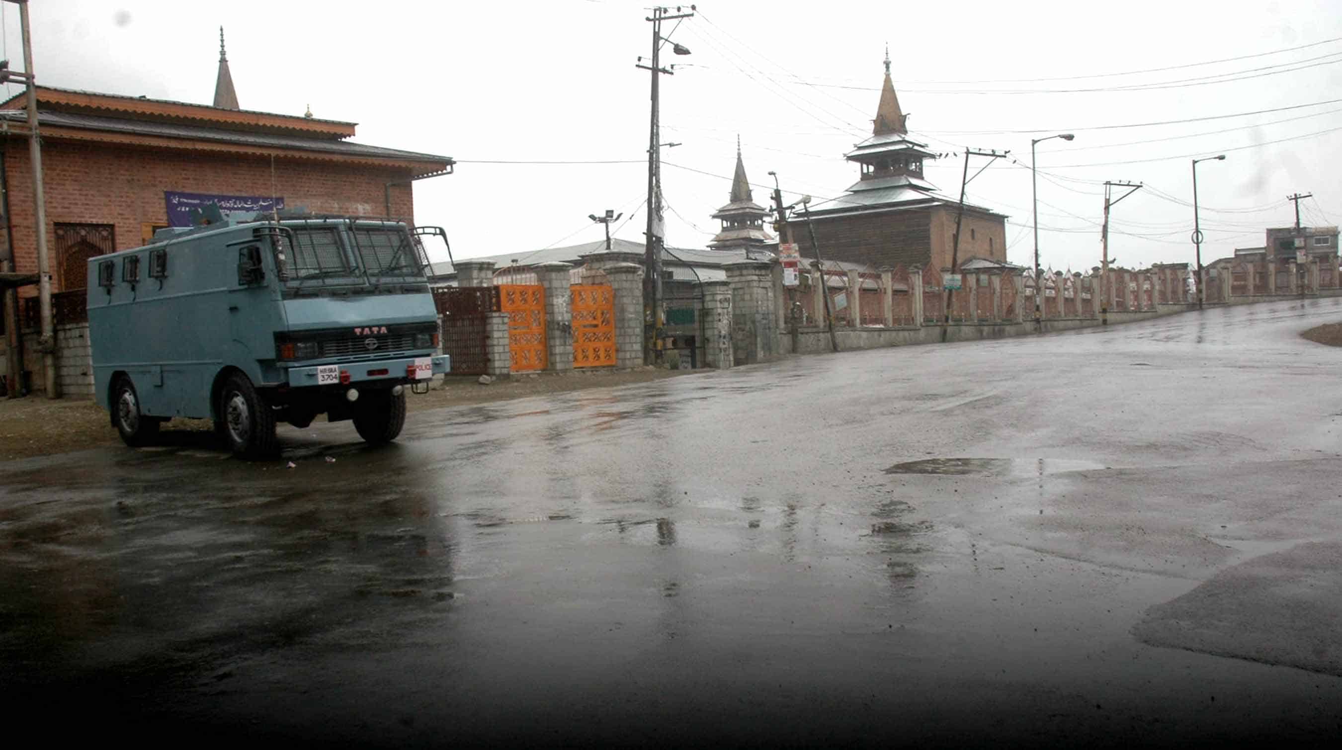 SRINAGAR, AUG 26 (UNI):- An armoured vehicle stationed outside Jamia masjid in down town Srinagar on Friday as strict curfew has been imposed to foil Azadi March called by separatists.UNI PHOTO-61U