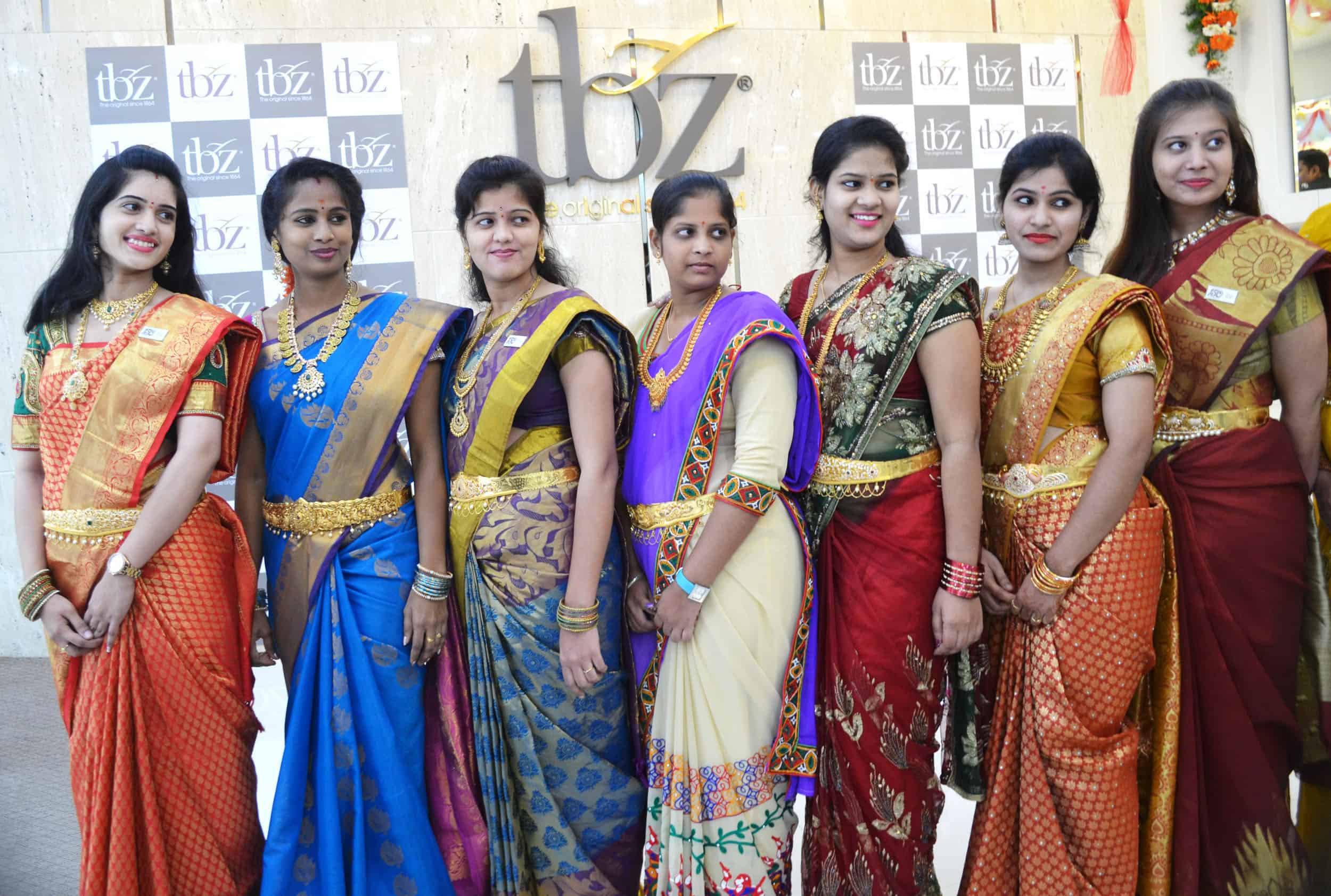 HYDERABAD, AUG 12 (UNI)- Models display ‘Devna Collection’ of jewellery at Tribhovandas Bhimji Zaveri (tbz), during launch of the new range on the occasion of Varalakshmi Vratam in Hyderabad Friday. UNI PHOTO-125U