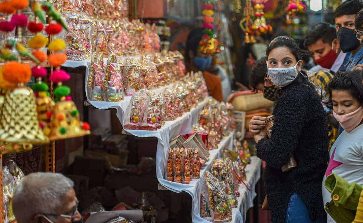 New Delhi: People shop on the occasion of ‘Dhanteras’ festival, at Yusuf Sarai Market in New Delhi, Thursday, Nov. 12, 2020. (PTI Photo/Vijay Verma)