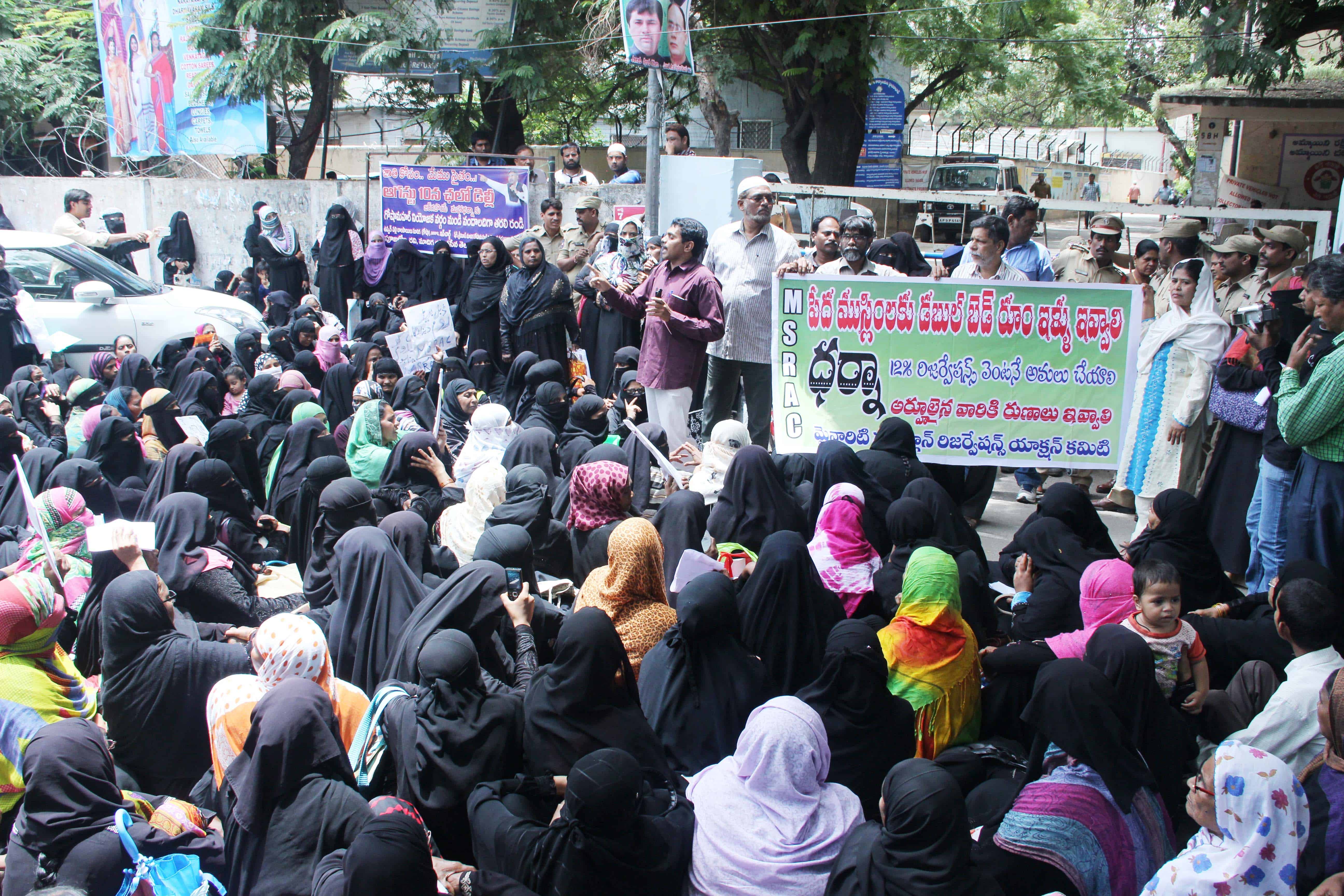 Dharna at Collector office for 12% reservation August 22, 2016 by laeeq Minority Sub-plan 12% Reservation Action Committee staged a dharna at Hyderabad Collectorate demanding 12% reservation and 2BHK flats for all. (Pic. Laeeq)