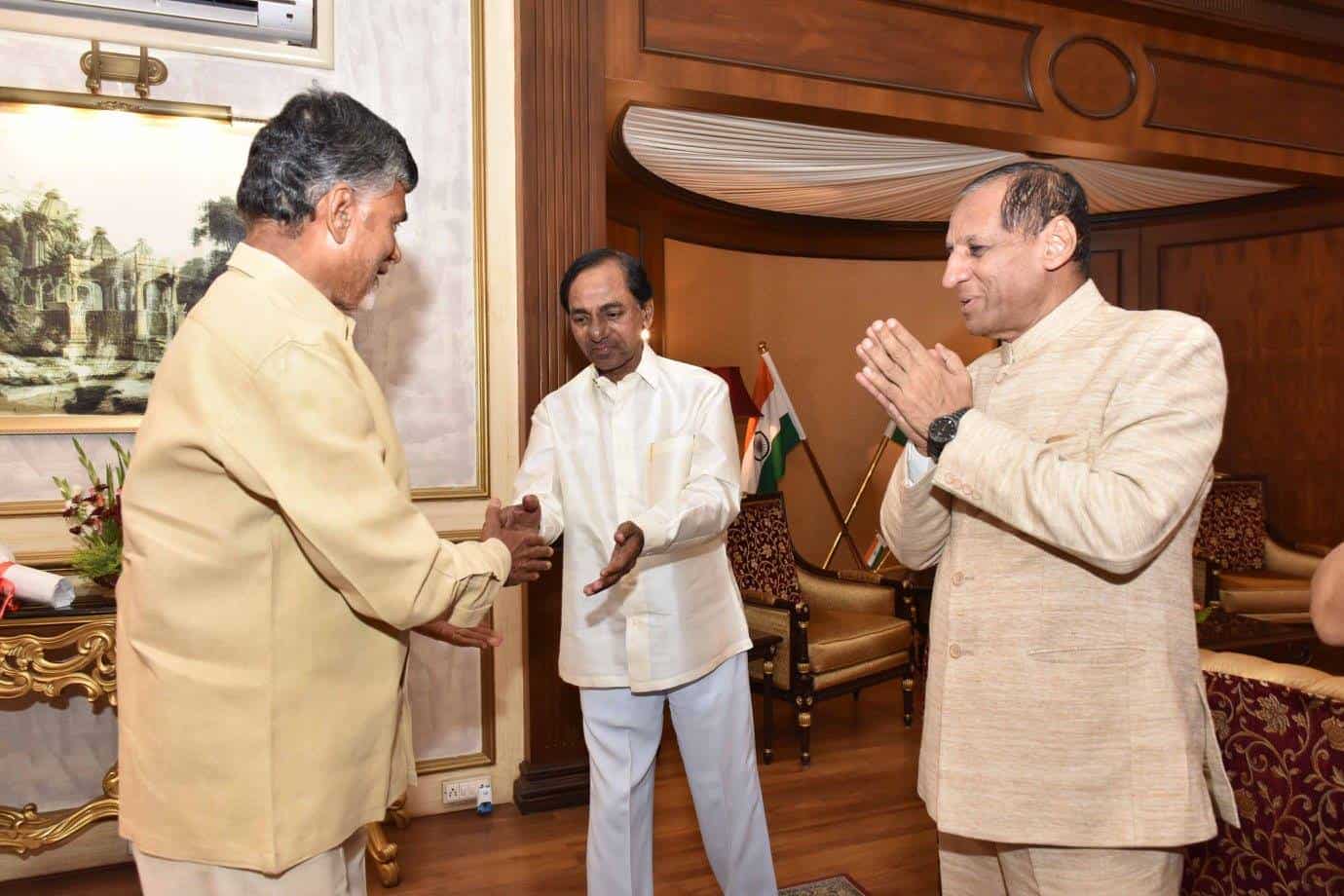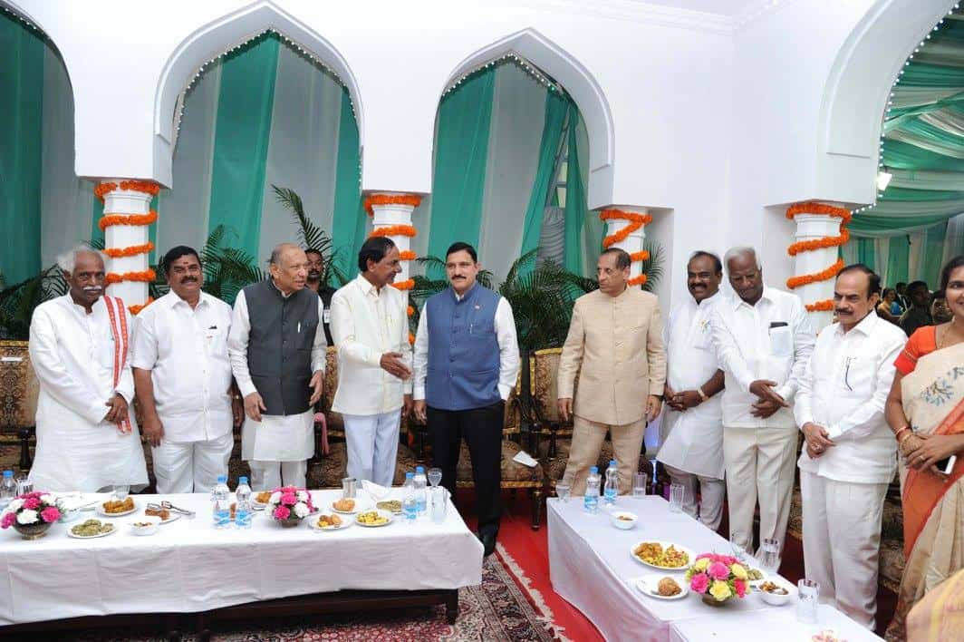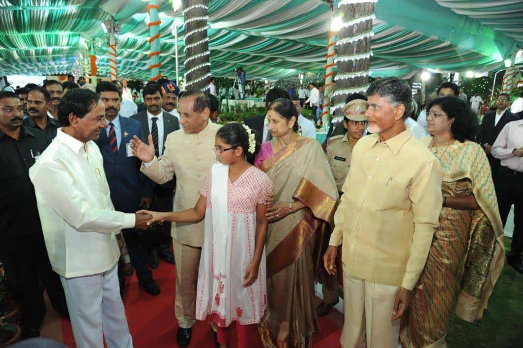 Union Minister Sri Bandaru Dattatreya, CM Sri K Chandrashekar Rao, Andhra Pradesh CM Sri Nara Chandra Babu Naidu, YS Jagan Mohan Reddy and a host of dignitaries attended the High Tea hosted by Hon’ble Governoer Sri ESL Narasimhan on the occasion of Independence Day.Photo:Laeeq