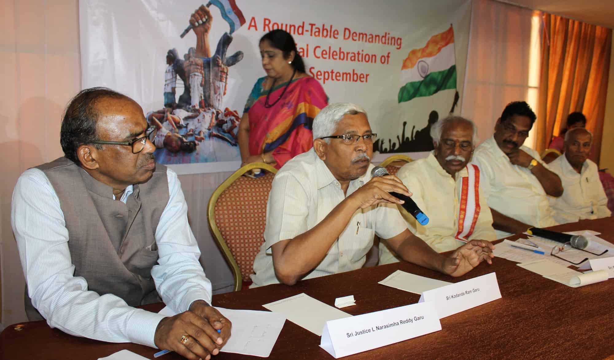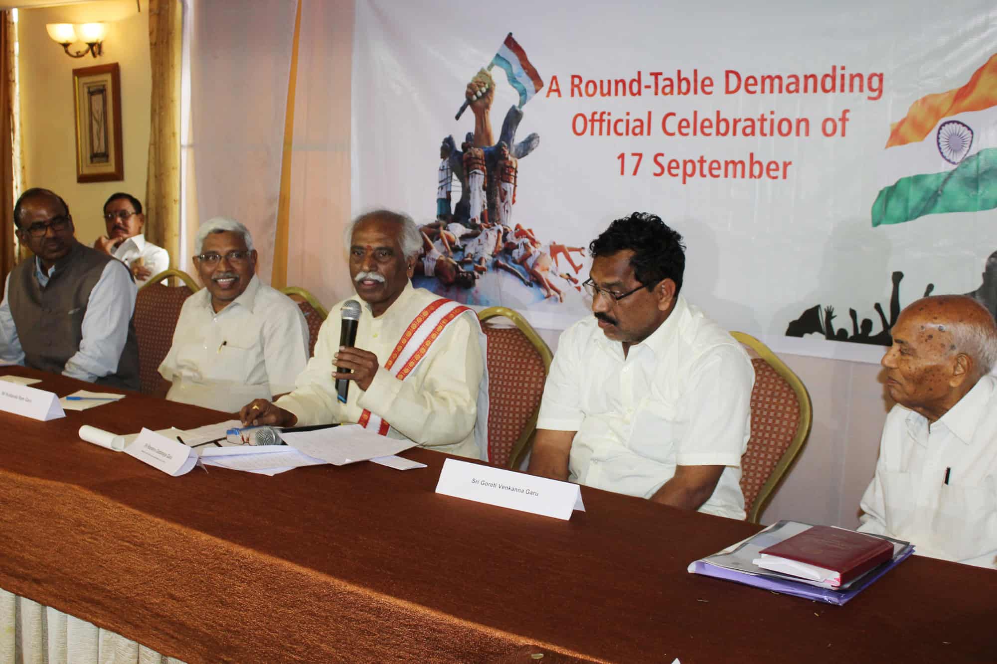 “Telangana state government should officially celebrate September 17 as Hyderabad Liberation Day “, The Union minister of state for labour and employment Bandaru Dattatreya said in a round-table conference held in Hyderabad today, demanded for Official Celebration of September 17 by Telangana government here. Speaking on the occasion Telangana – joint action committee (JAC) chairman M Kodandaram said that the day September 17 had created a significant event in the history of Hyderabad. September 17, 1948, was the day when the Hyderabad state, which was under the Nizam’s rule, was integrated into the Indian Union. That has lot of significance, by that day onwards Nizam’s rule came to an end and it became part of Indian republic,” he added. he notified that we should not call it as a Liberation Day or some kind of a Betrayal Day…but let us recognize this as an Integration Day,” he explained. (Photo: Zabi)