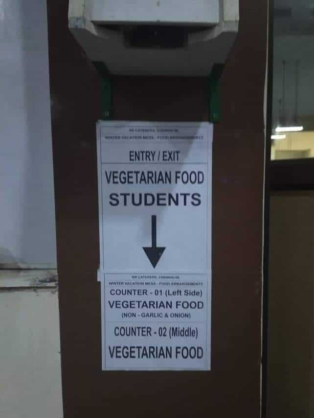 “This is the first time a mess has two separate entrances for vegetarians and non-vegetarians. Not just that, even separate wash basins and separate utensils as well,” one of the students told.