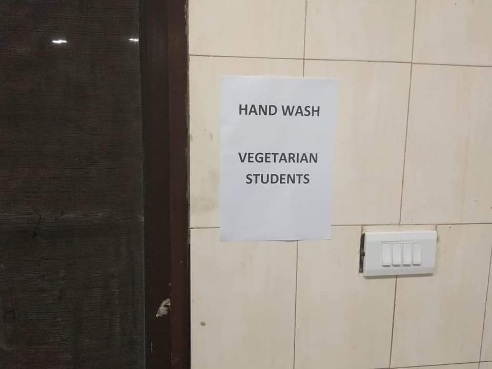 “Hand Wash Vegetarian Students”, “Winter vacation mess – food arrangements. Entry/exit non-vegetarian food students,” are the few posters circulating on the internet.