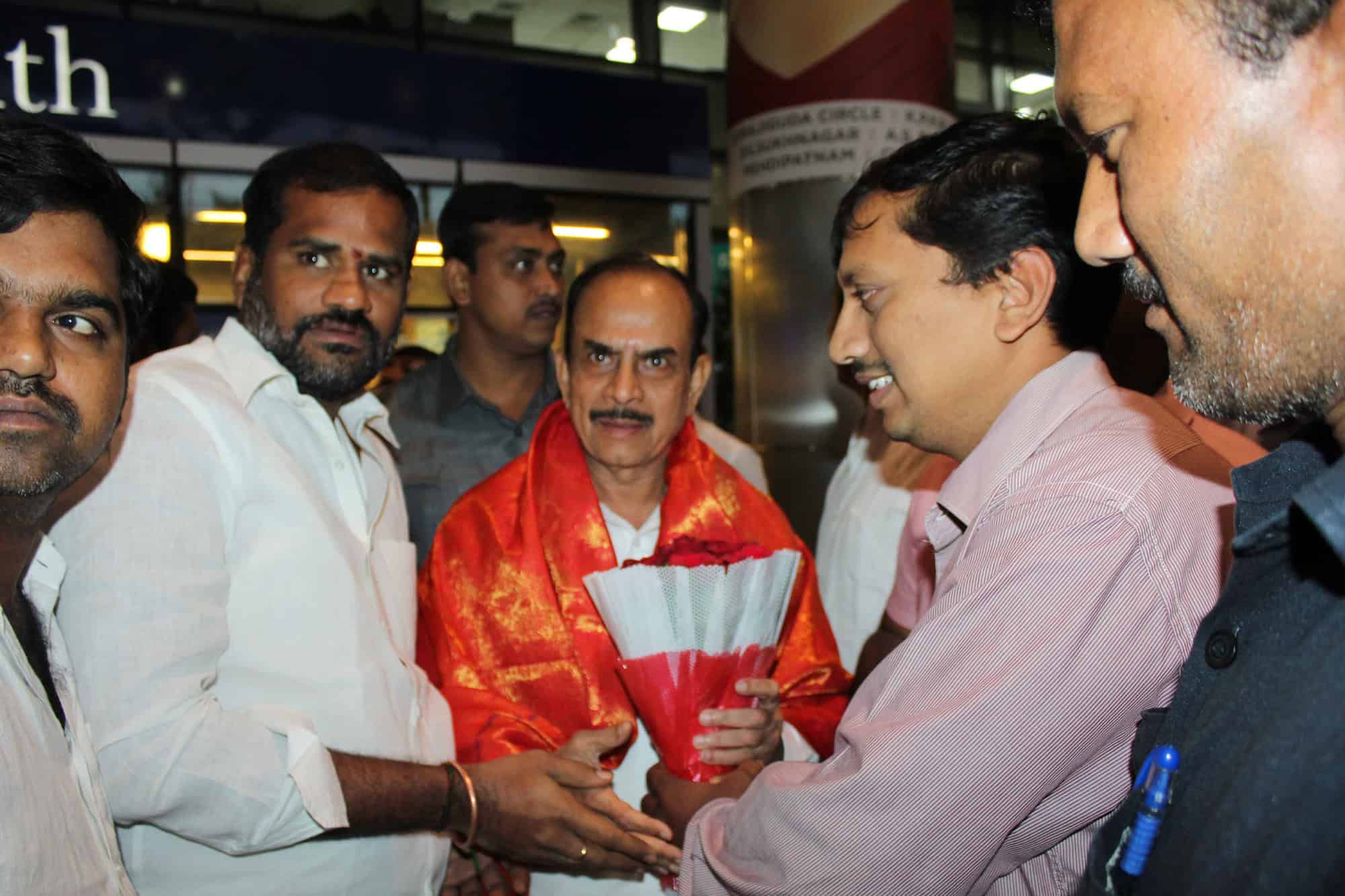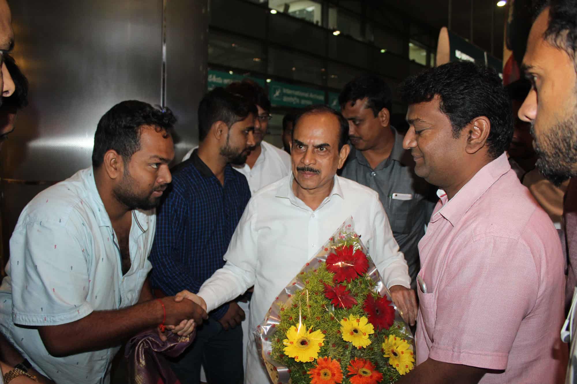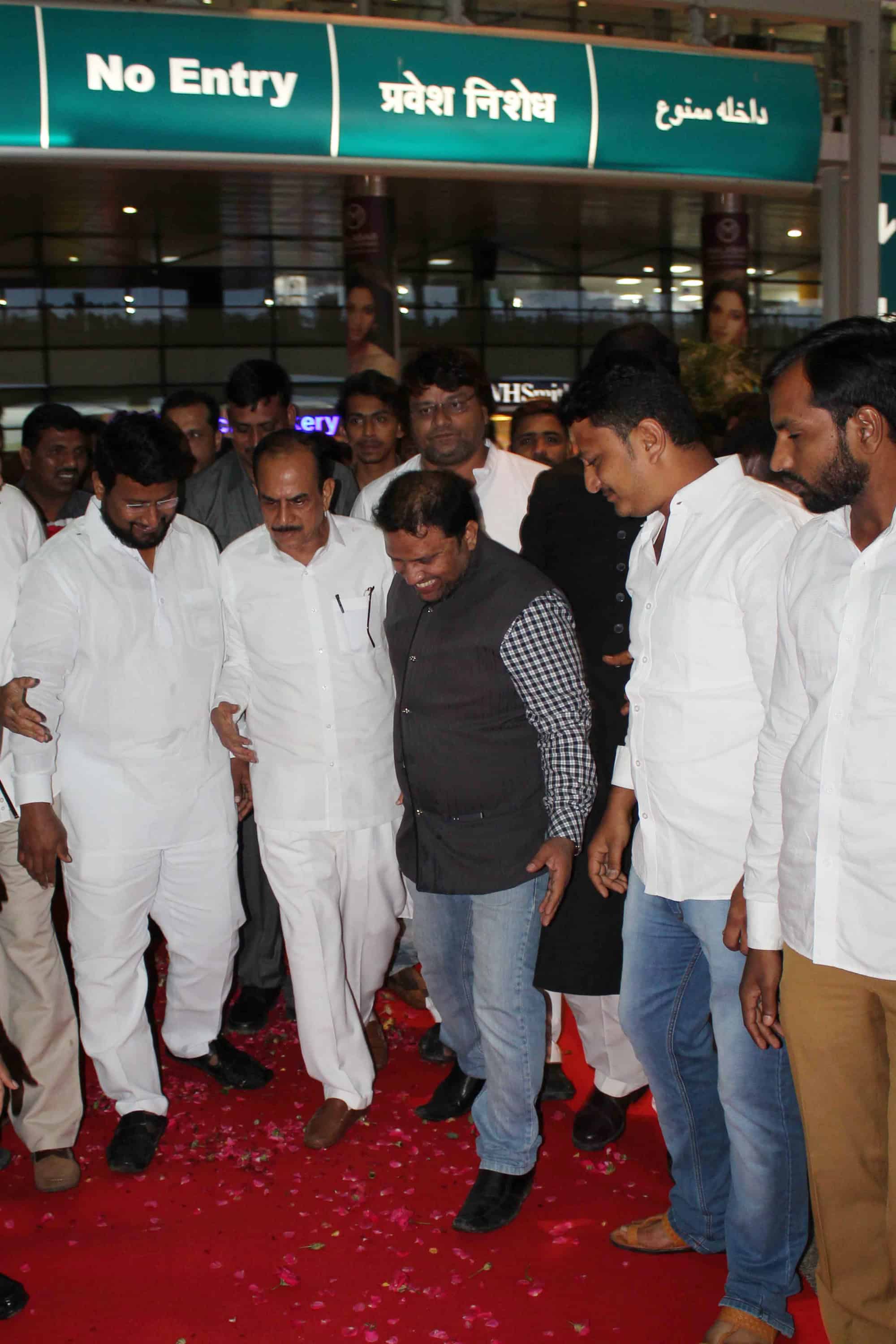 Deputy Chief Minister Alhaj Mohammed Mehmood Ali was received at Shamshabaad International Airport on Tuesday morning. (Photo: Zabi)