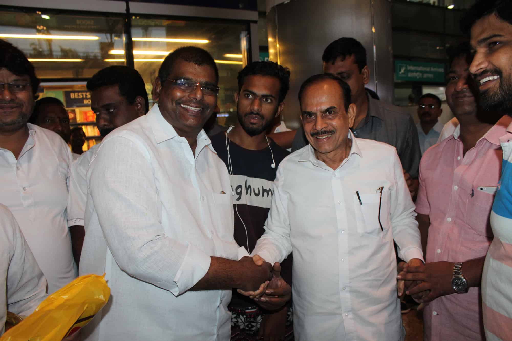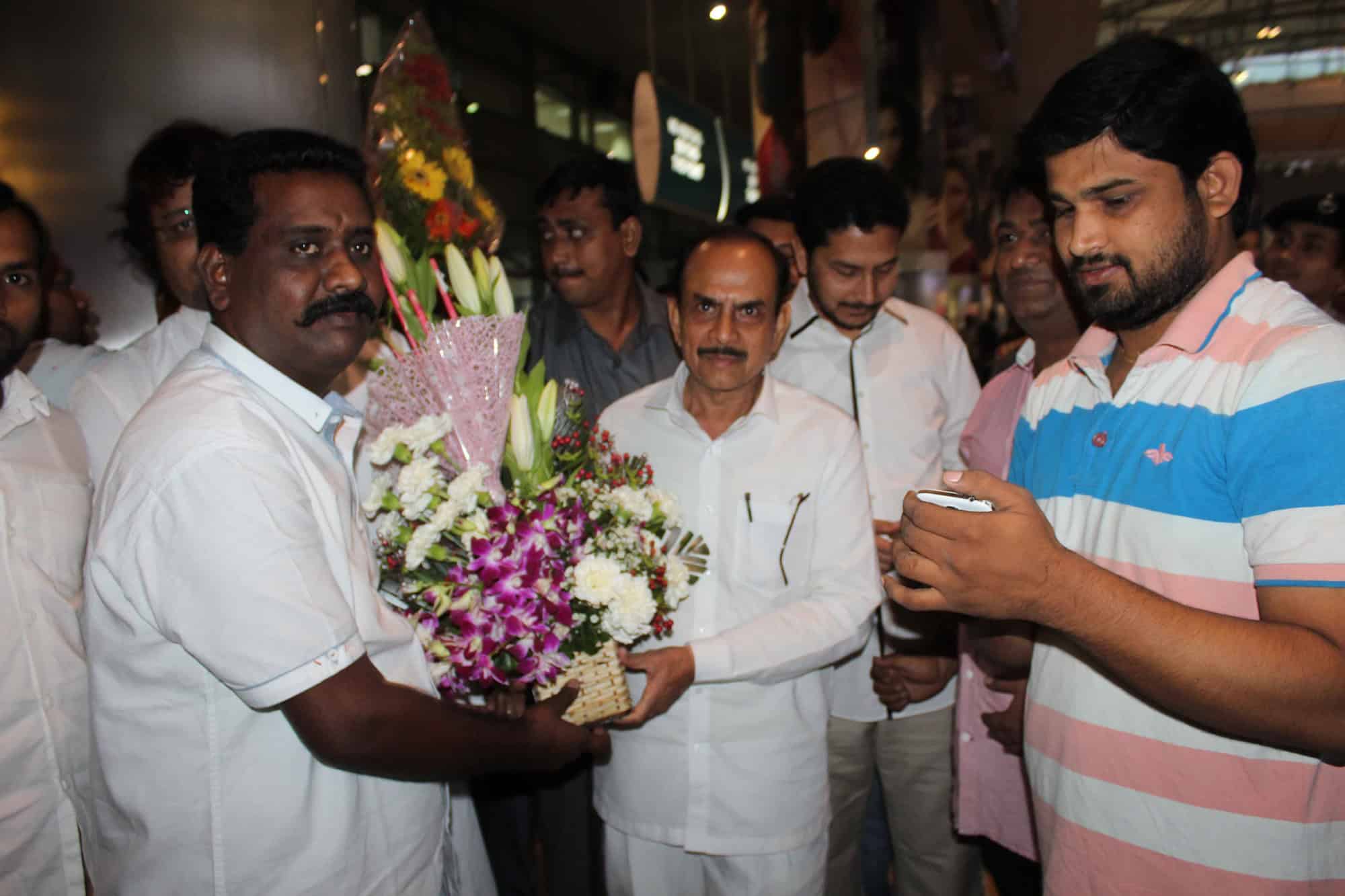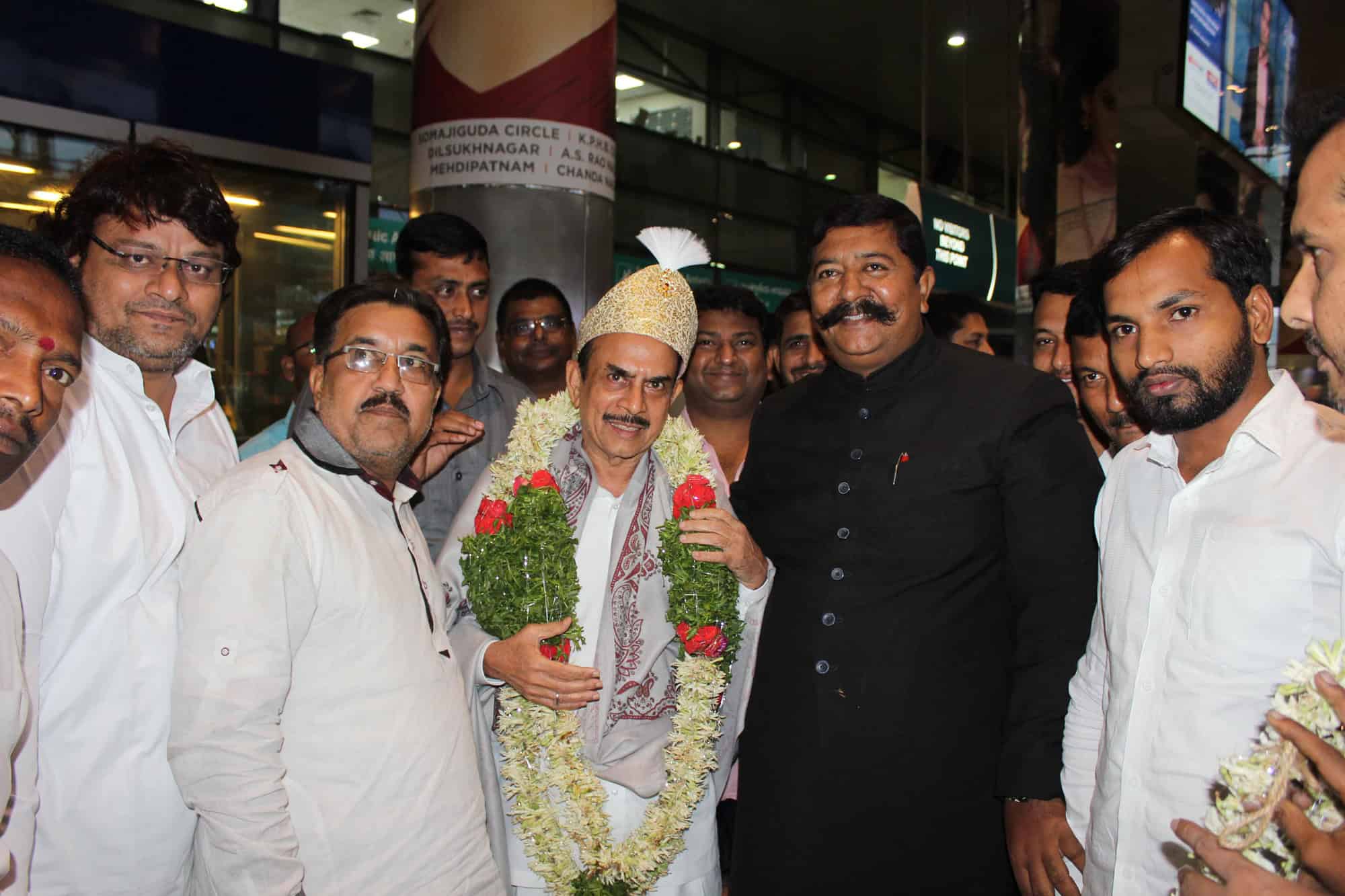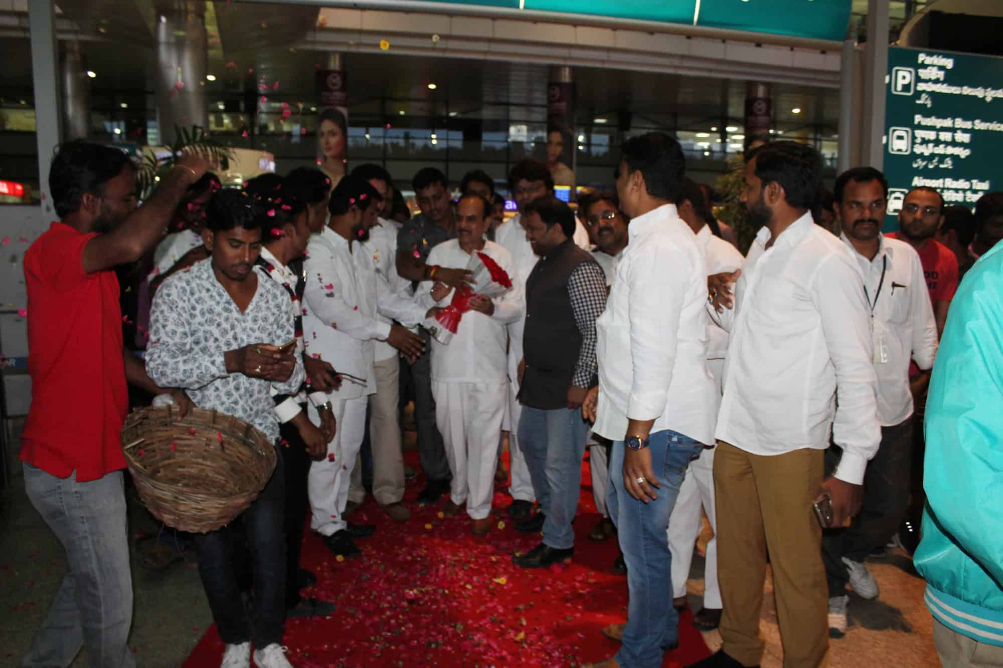 Deputy Chief Minister Alhaj Mohammed Mehmood Ali was received at Shamshabaad International Airport on Tuesday morning. (Photo: Zabi)