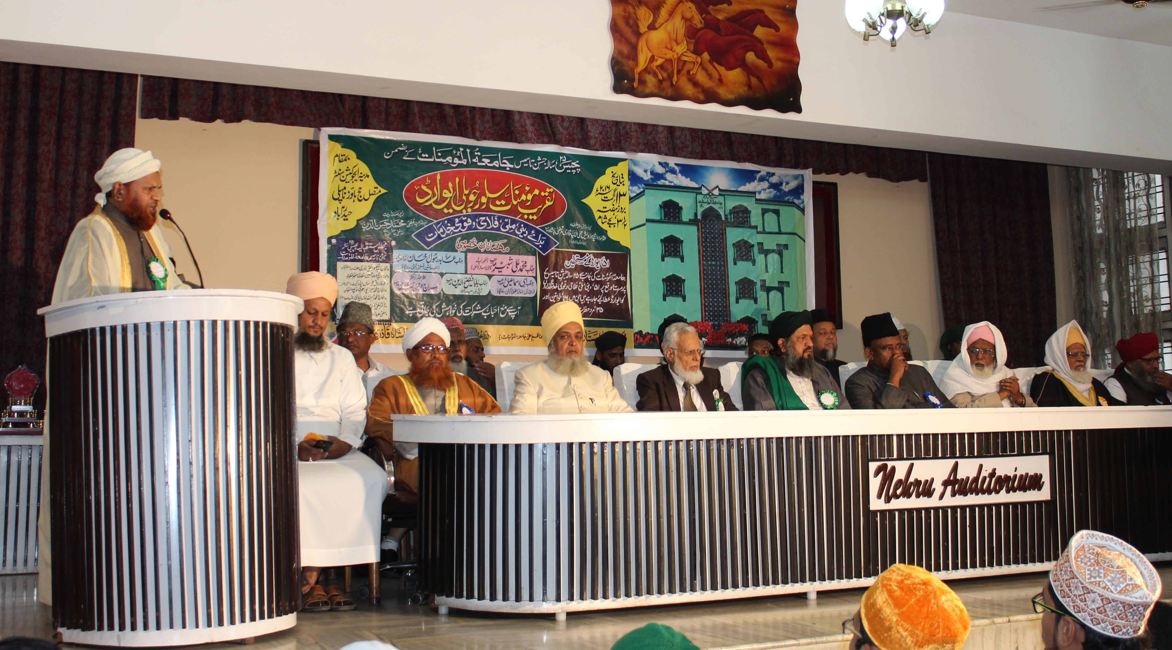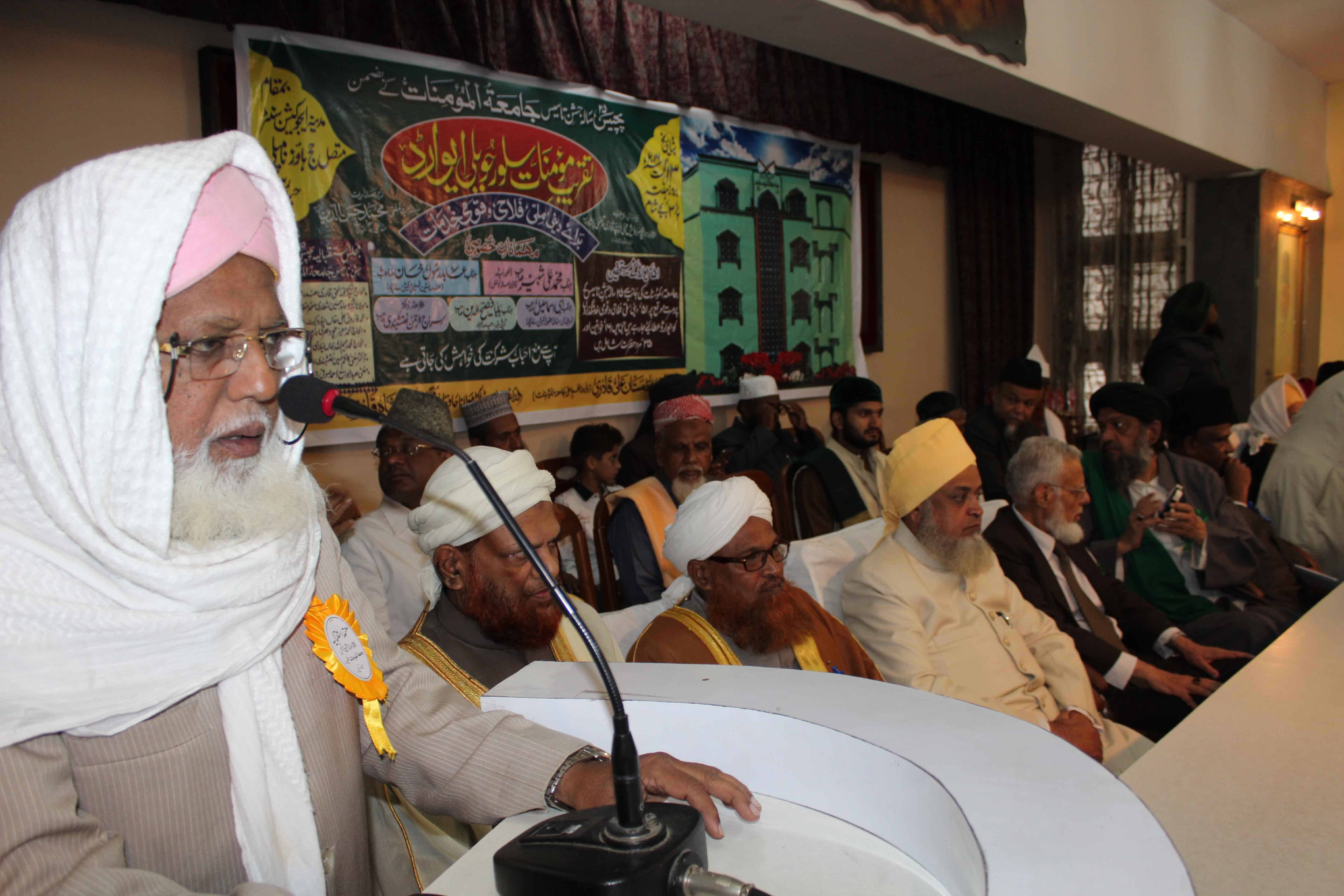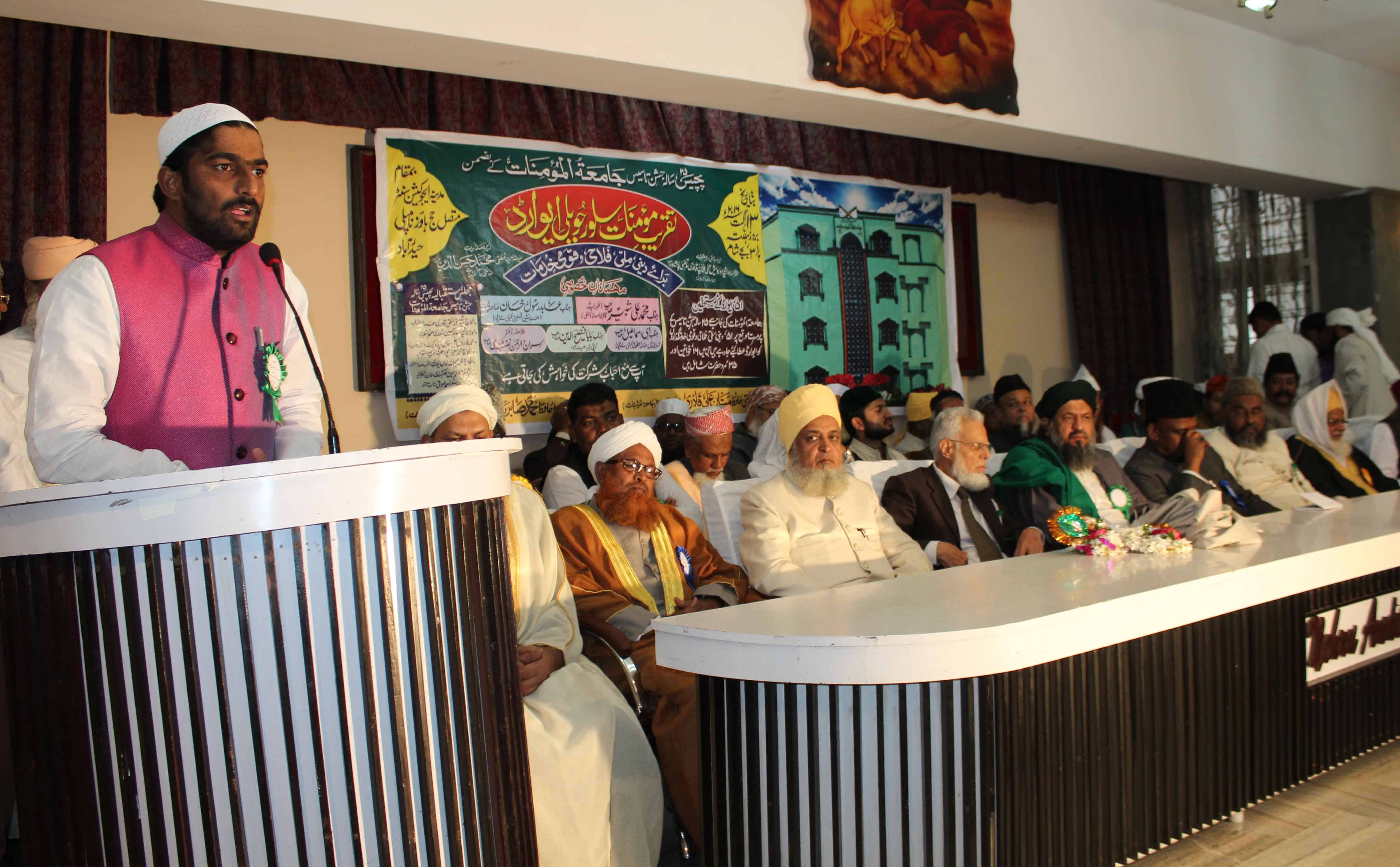 Deputy Mayor Baba Fasiuddin, Moulana Syed Hamid Hussain Shuttari and others can be seen addressing at Madina Education Center during silver jubilee celebrations of Jamait ul Mominath, MoghalPura. (Photo: Zabi)