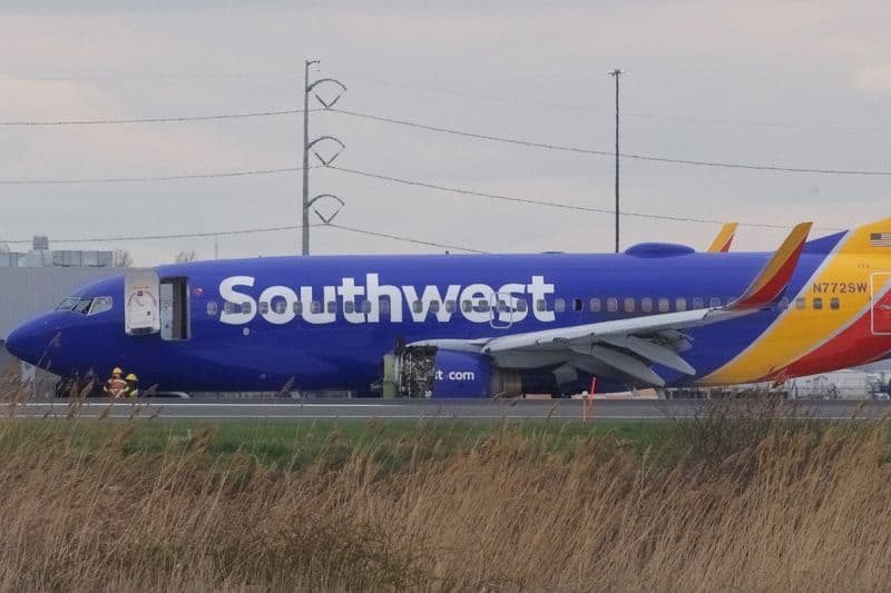 PHILADELPHIA: Emergency personnel monitor the damaged engine of Southwest Airlines Flight 1380, which diverted to the Philadelphia International Airport this morning after the airline crew reported damage to one of the aircraft’s engines, on a runway in Philadelphia, Pennsylvania U.S. April 17, 2018.