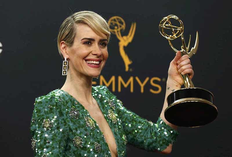 LOS ANGELES, SEP 19:- Sarah Paulson poses backstage with her award for Outstanding Lead Actress In A Limited Series Or Movie for “The People v. O.J. Simpson: American Crime Story” at the 68th Primetime Emmy Awards in Los Angeles, California U.S., September 18, 2016. REUTERS-2R