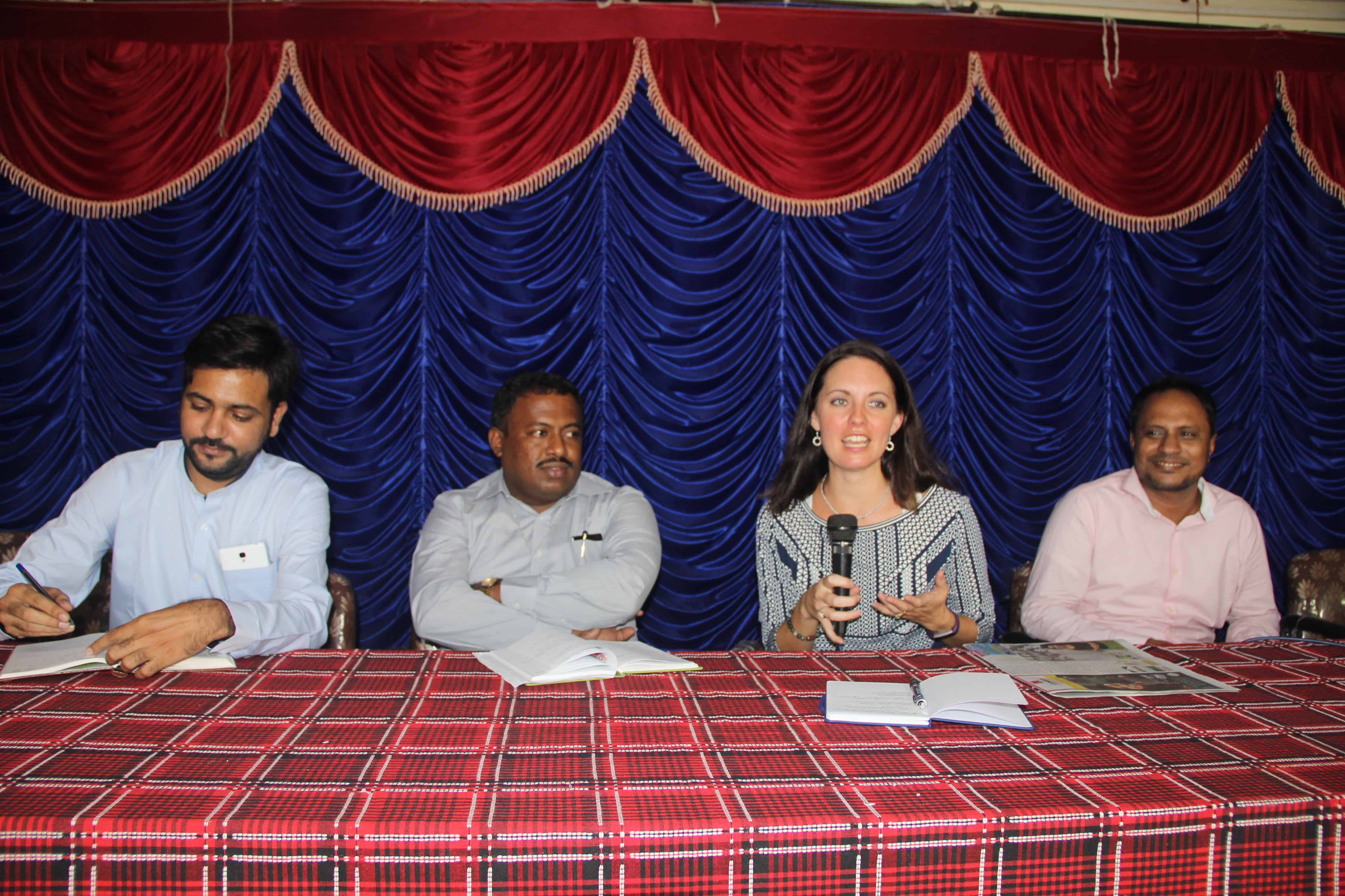 A free seminar being held at Siasat on Monday for “English for Employability” in coordination with US Consulate Hyderabad. Master trainer Mr. Syed Hasanuddin Anas explained about the communication skills and its importance for employability. English Language Fellow from US Ms. Lara Neely, Mr. Senthil and Mr. Zahed Farooqui can also be seen during the seminar. (Pic. Laeeq)
