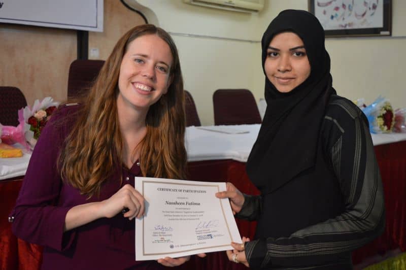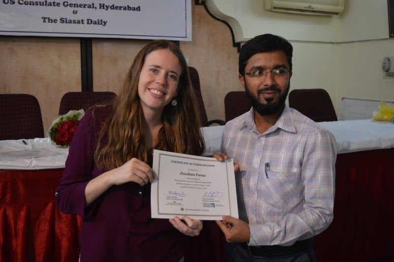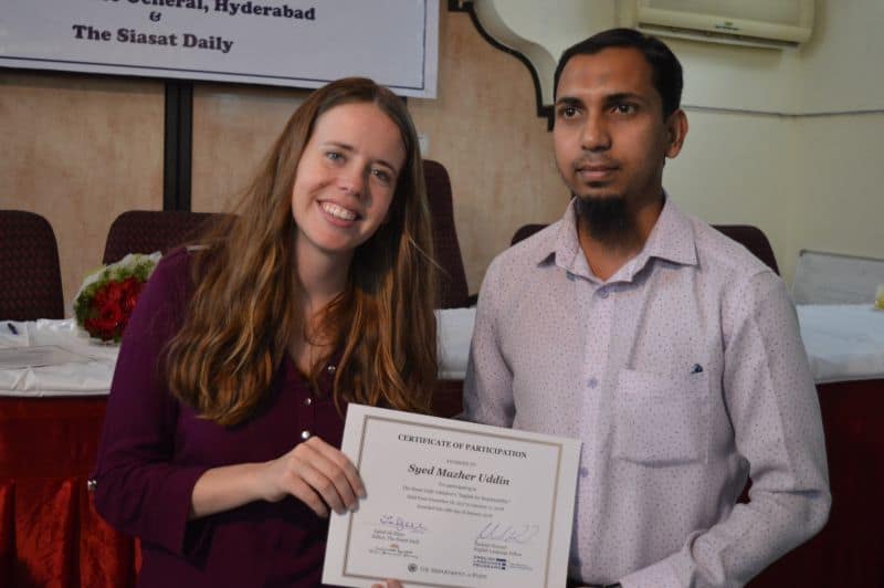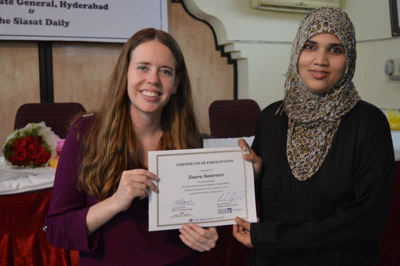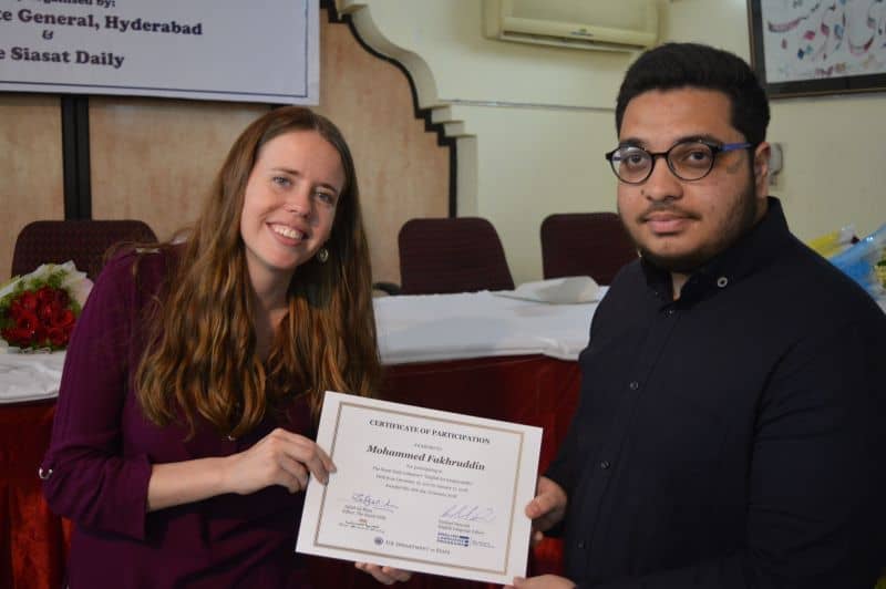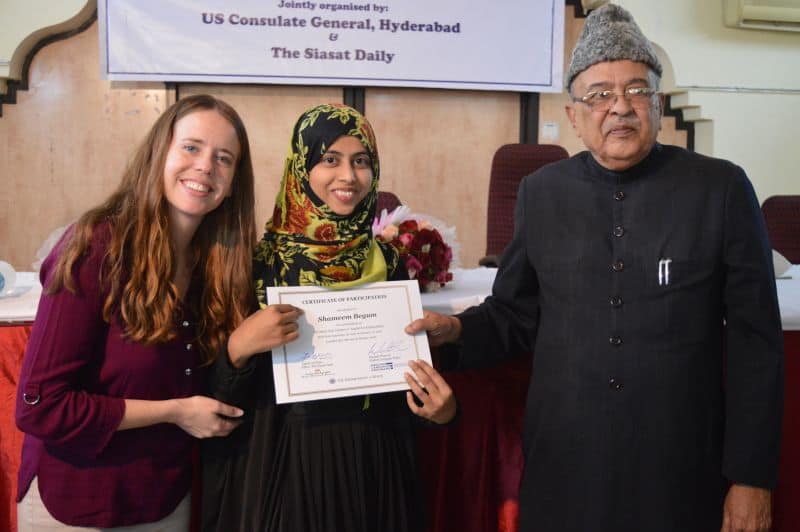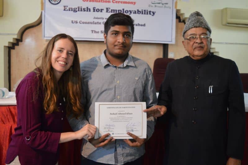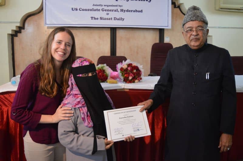 Two more batches of English proficiency course named, ‘English for employability’ concluded on Thursday. US Consul General Katherine Hadda, Editor Siasat Mr. Zahid Ali Khan, Asst. Public Affair Officer, Mr. Akash Suri give away the certificates. The course was jointly conducted by Siasat daily and American Consulate. The course was conducted from December 18, 2017 to January 17, 2018. Ms. Rachael Dimond led the batches. (Pics. Murli)