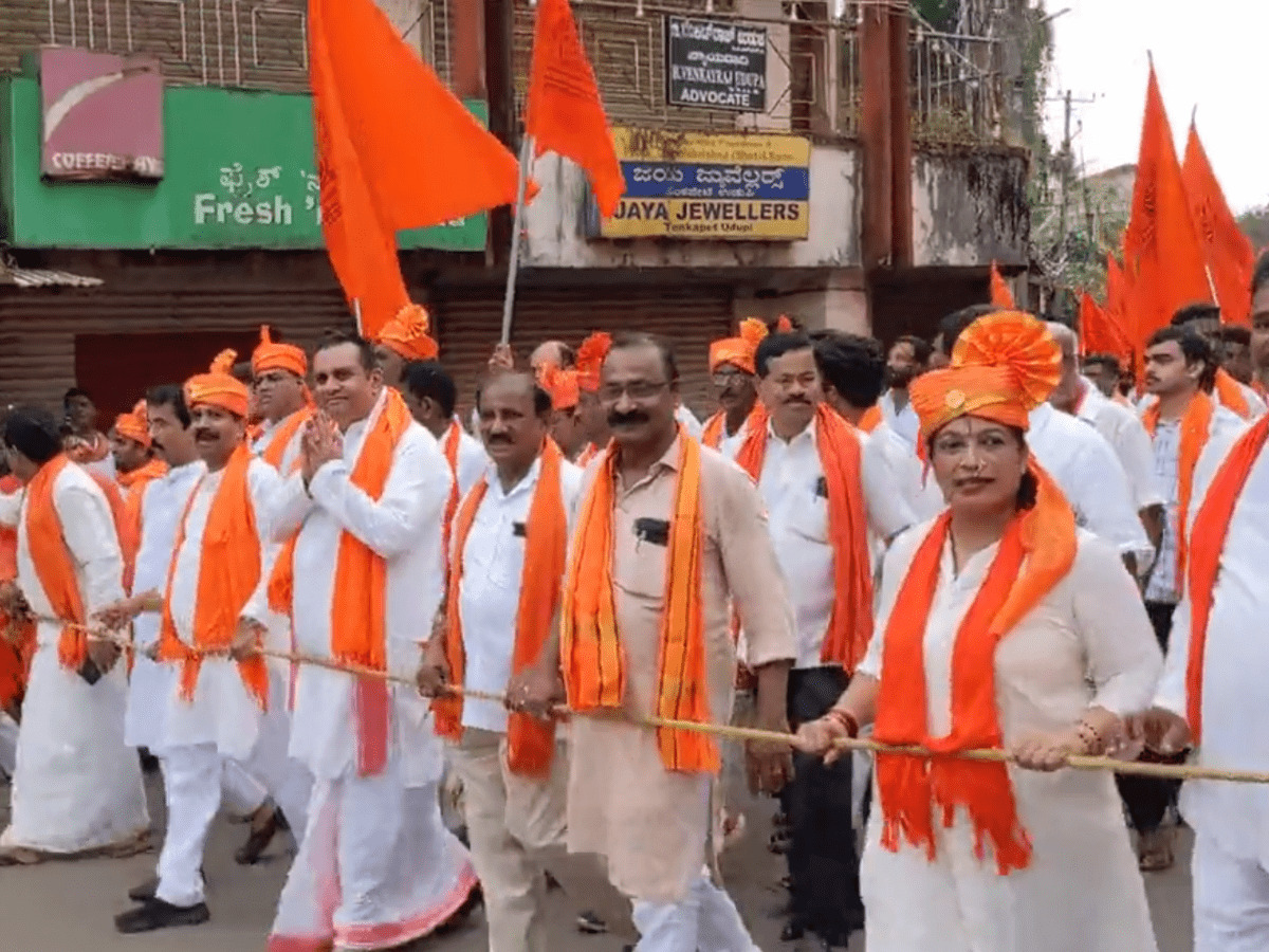 Calls for a Hindu Rashtra were made and some workers were spotted carrying swords even as the state police walked alongside them. Udupi’s Bharatiya Janata Party (BJP) MLA Raghupathi Bhat was also spotted taking part in the rally.