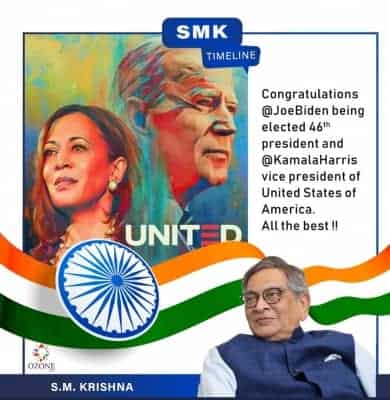 “Congratulations @JoeBiden on being elected the 46th President and @Kamala Harris Vice-President of the United States of America. All the best!,” tweeted Krishna, who served as India’s Foreign Minister from 2009-12 in the Congress-led UPA-2 government.