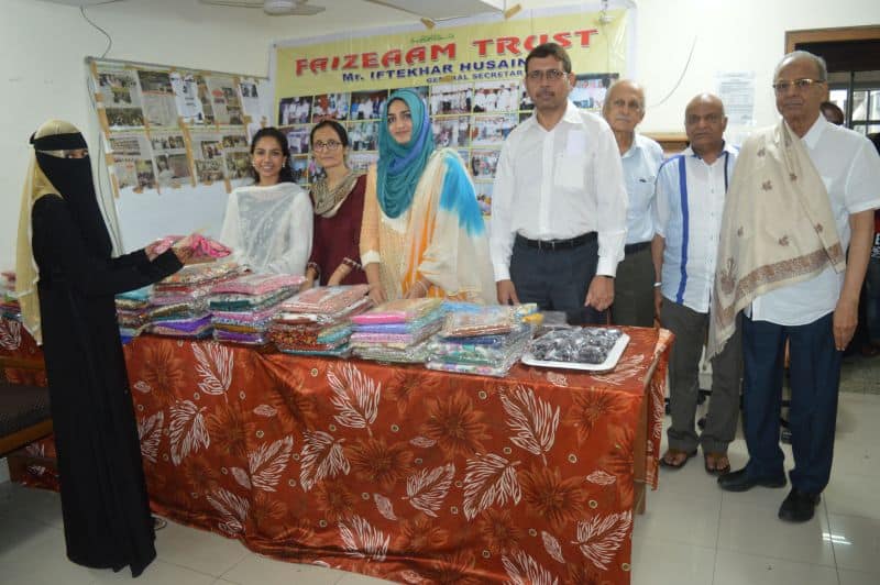 Faiz-e-Aam distributes Sarees, ladies suits and cash envelopes to poor needy persons at their office on Tuesday 12th June 2018 in Hyderabad.