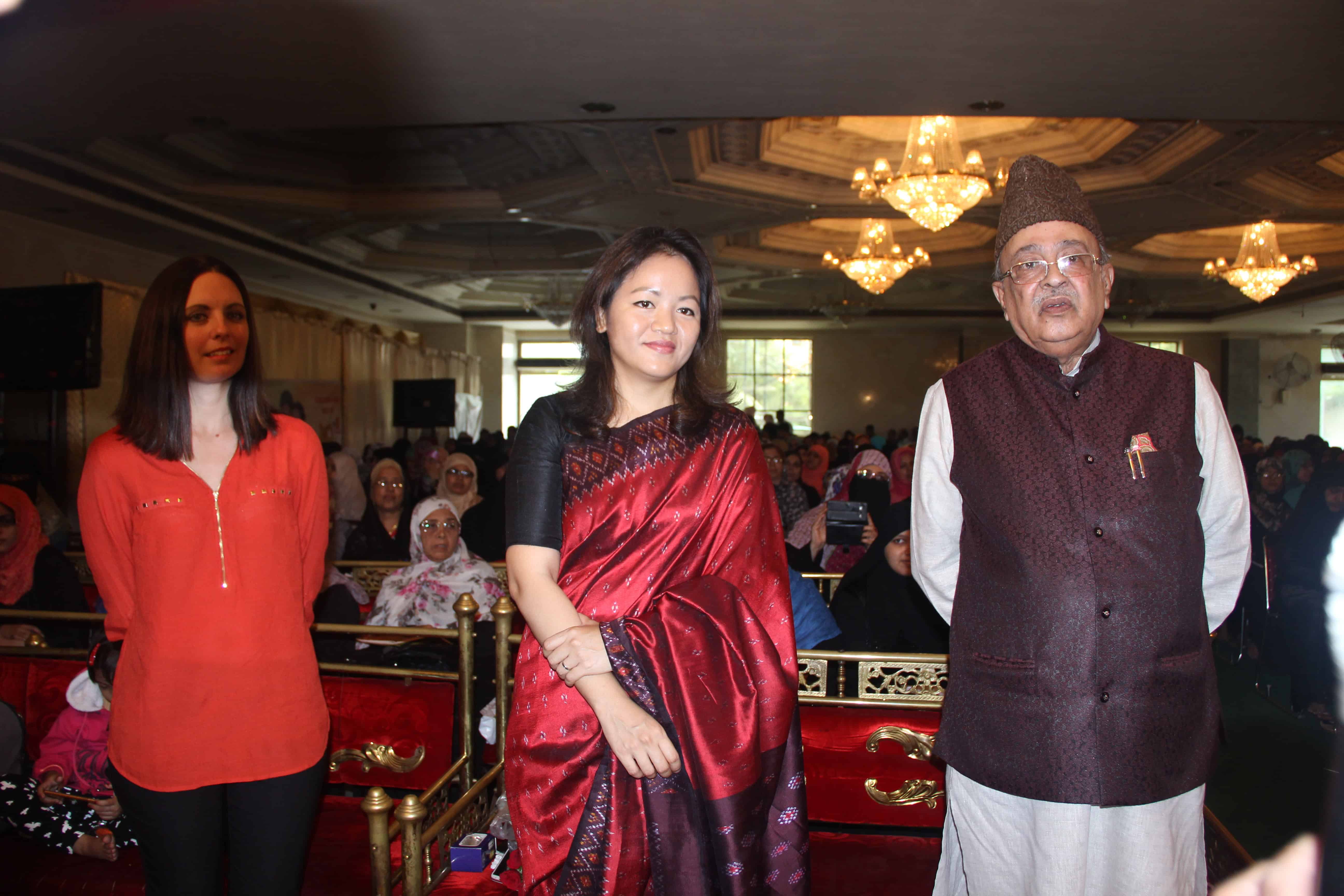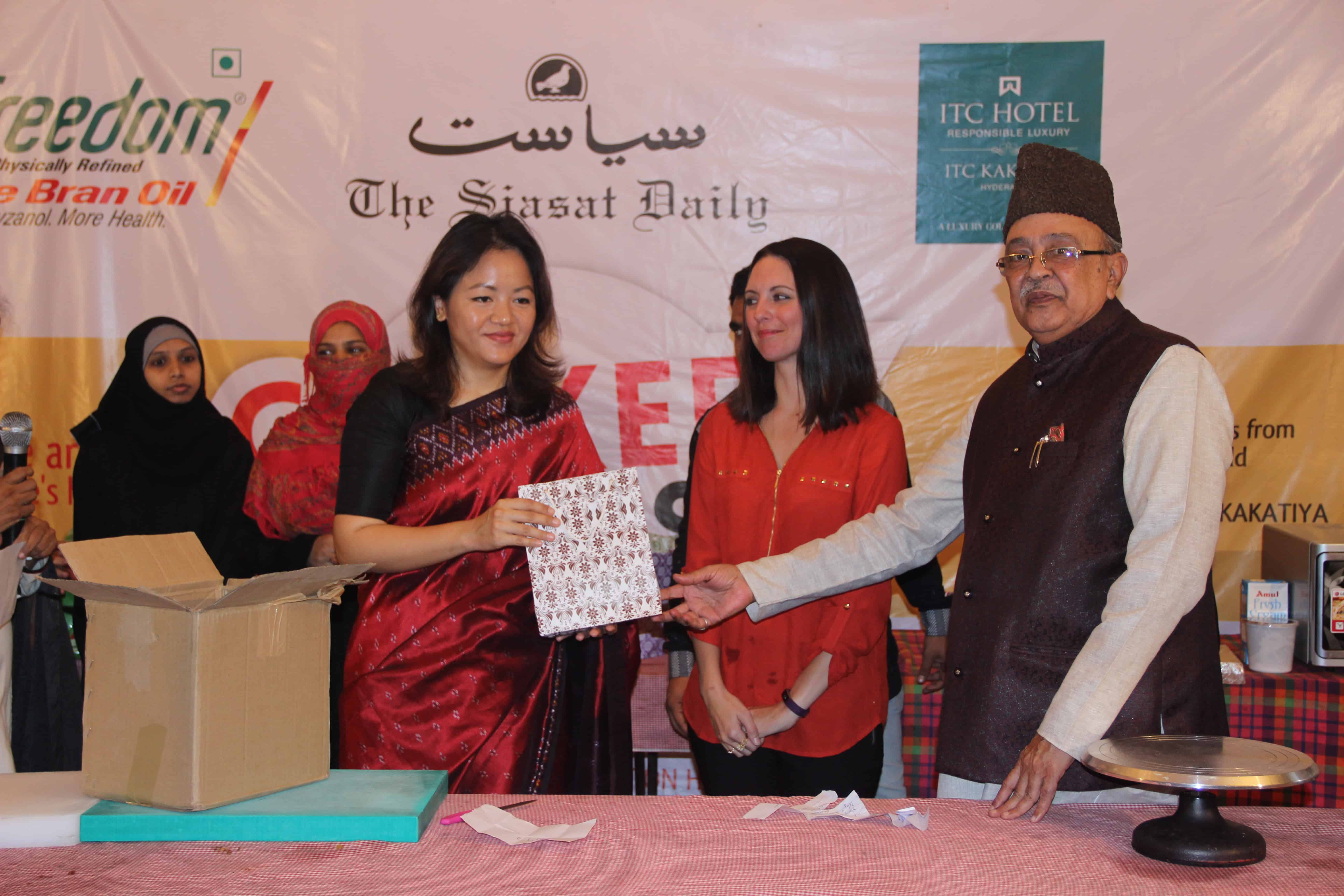 Mr. Zahid Ali Khan, Editor, The Siasat Daily is seen presenting mementos to MD, Telangana State Tourism Dr. Christina Z. Chongthu, IAS and Ms. Lara Neely, English Language Fellow, US Consulate at the cookery show event organised by The Siasat Daily in association with ITC Kakatiya and Freedom Oil at Khaja Mansion Function Hall, Banjara Hills, Hyderabad on Thursday. (Pic. Laeeq)