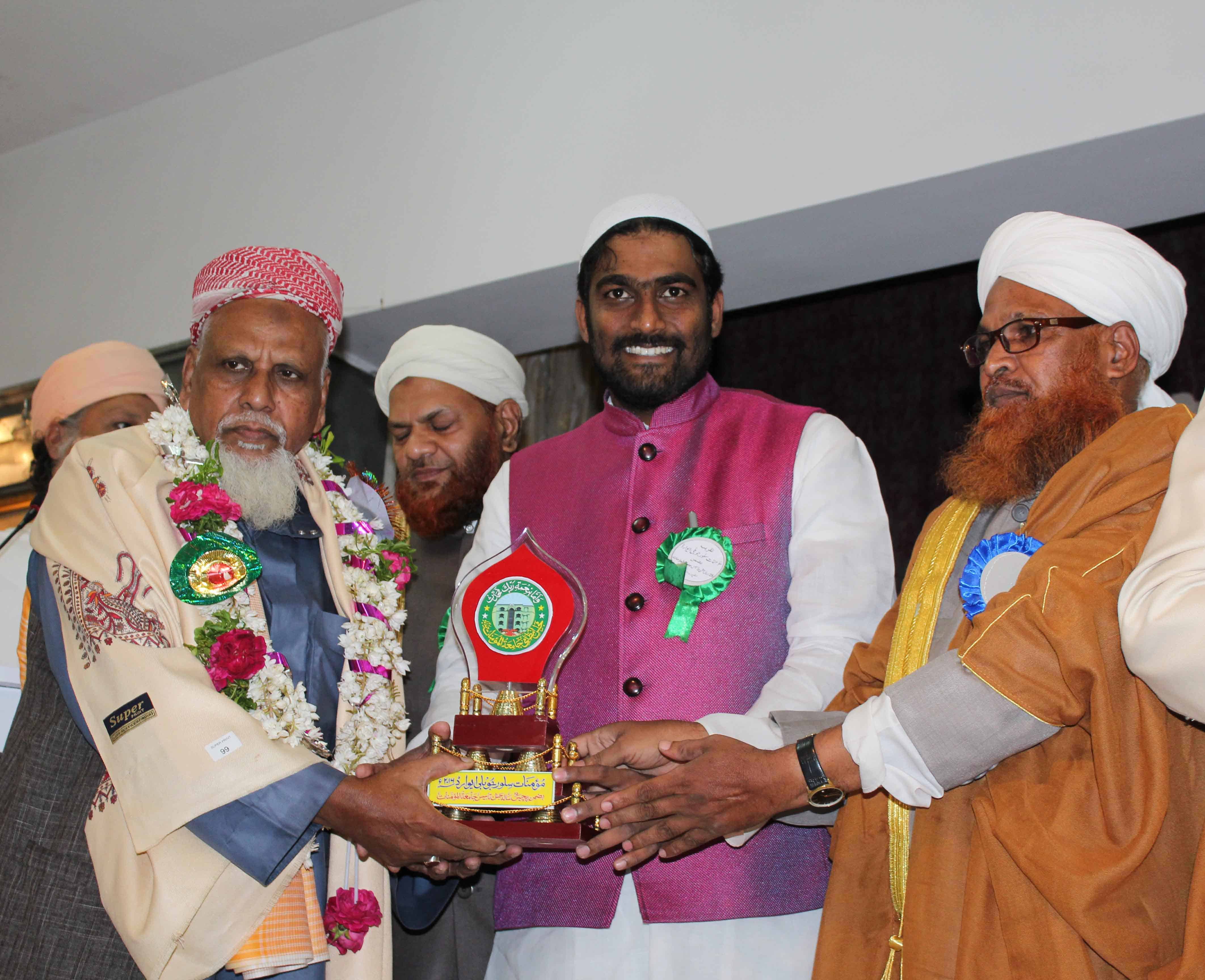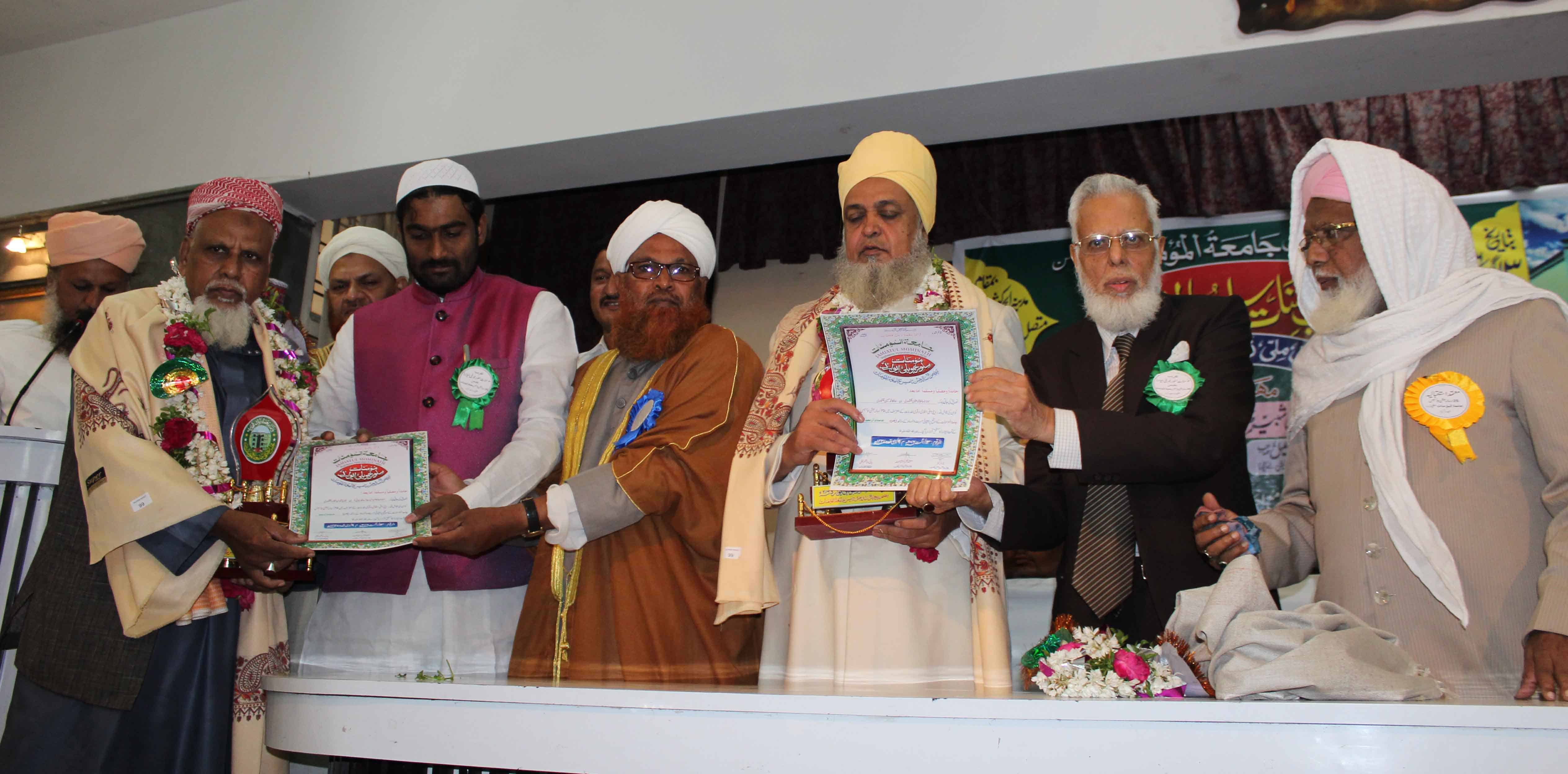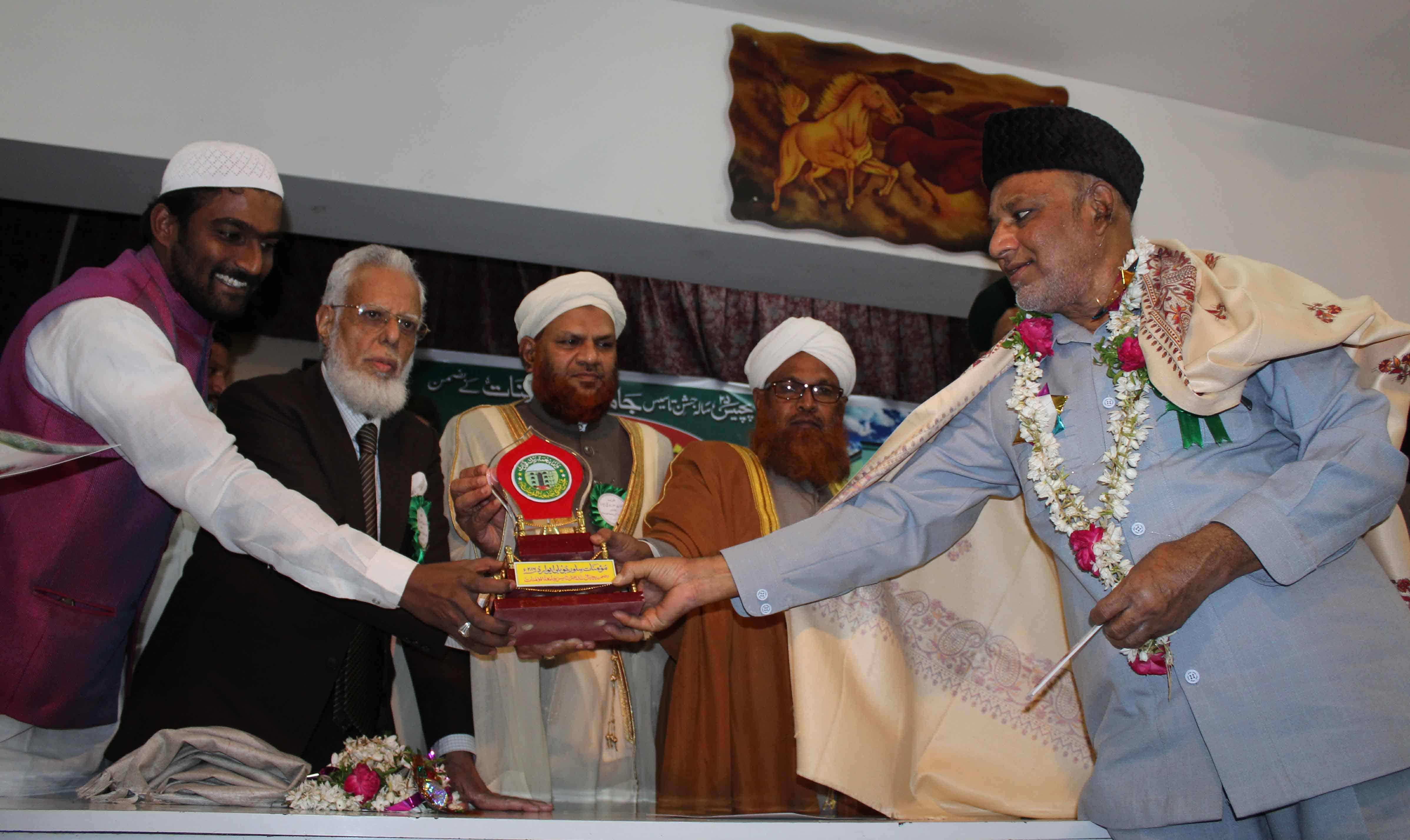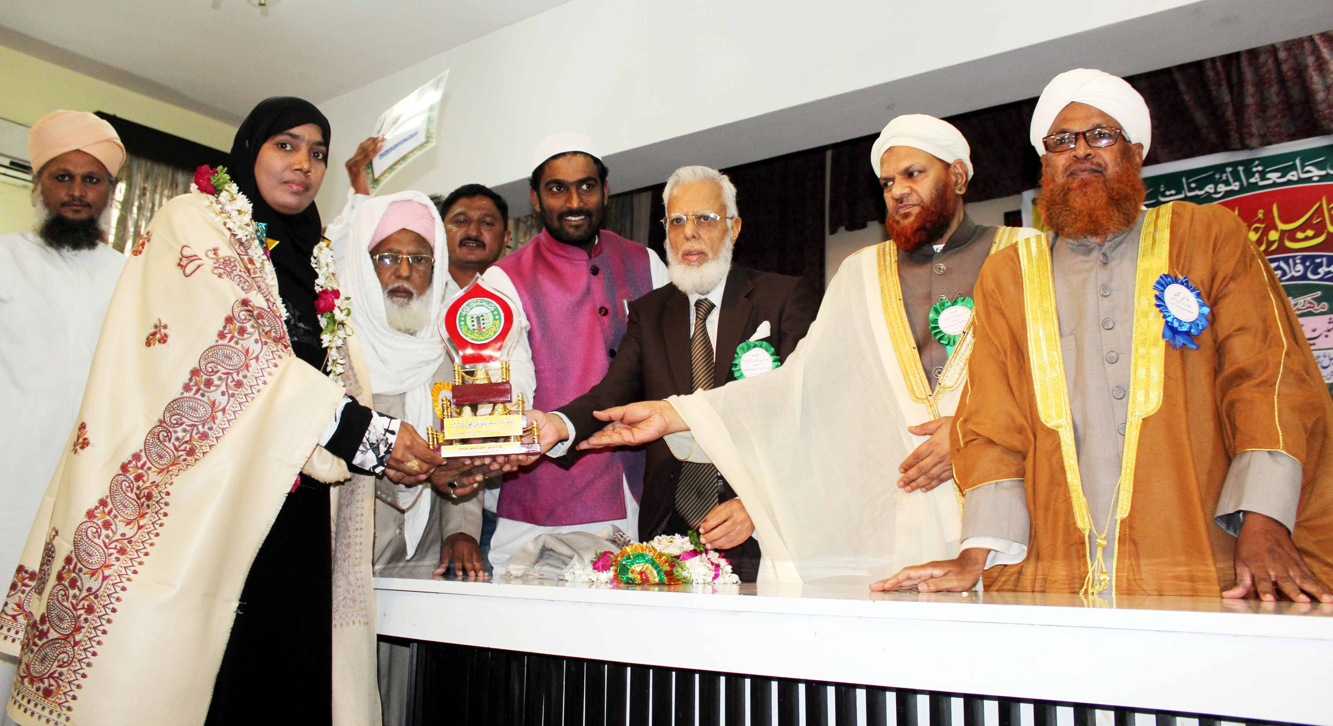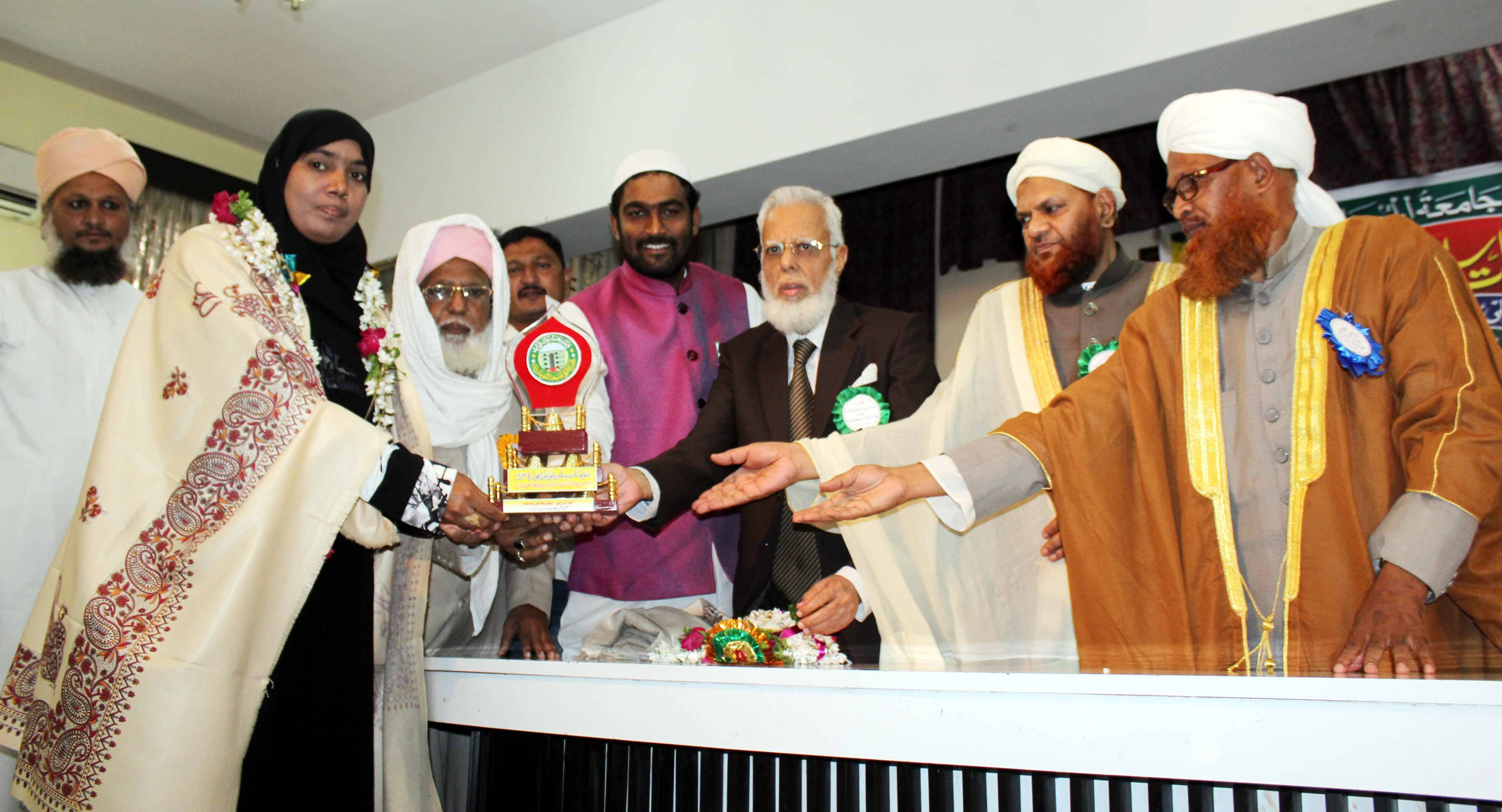 On the occasion of Jamait ul Mominath’s silver jubilee ceremony Deputy Mayor Baba Fasiuddin, Justice Ismail Ahmed, Abdul Waheed Adovacate, Moulana Osman Naqshbandi, Mohammed Qamaruddin Engineer, Syeda Falak, and many more dignitaries was felicitated and awarded by Moulana Syed Durvesh Mohiuddin also known as Murtuza Pasha, Syed Shah Noorul Haq Quadri and others at Madina Education Center. (Photo: Zabi)