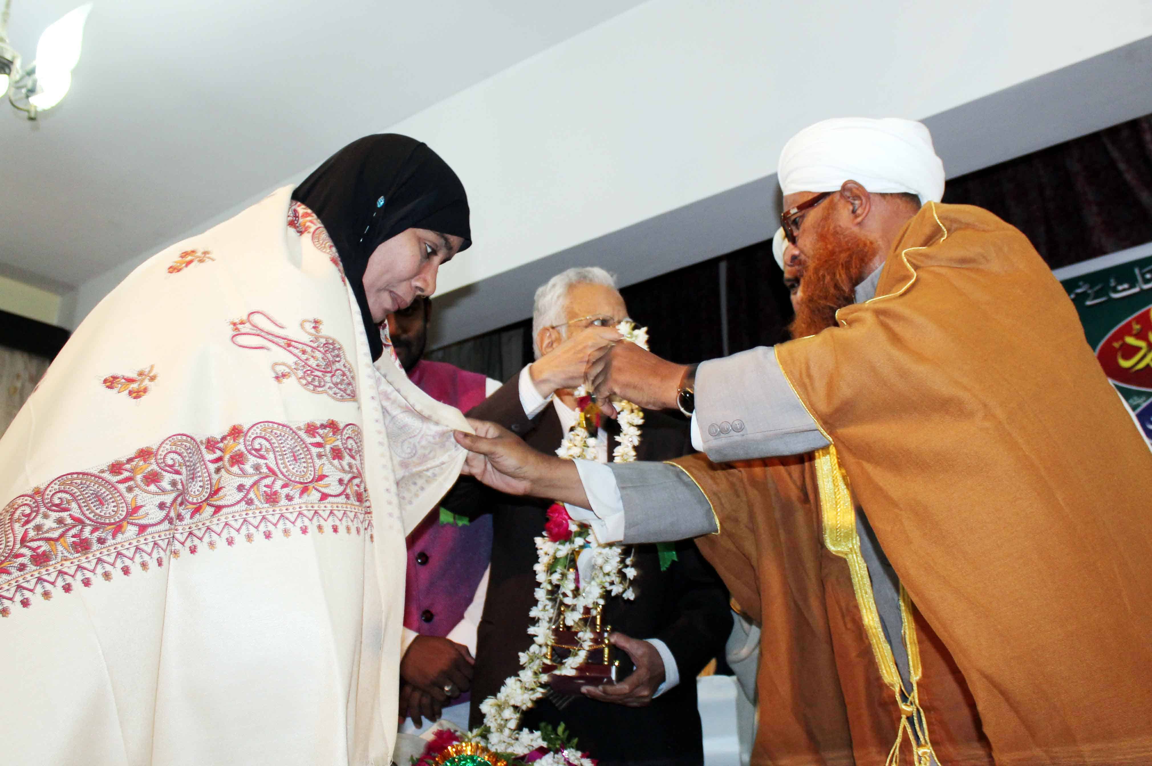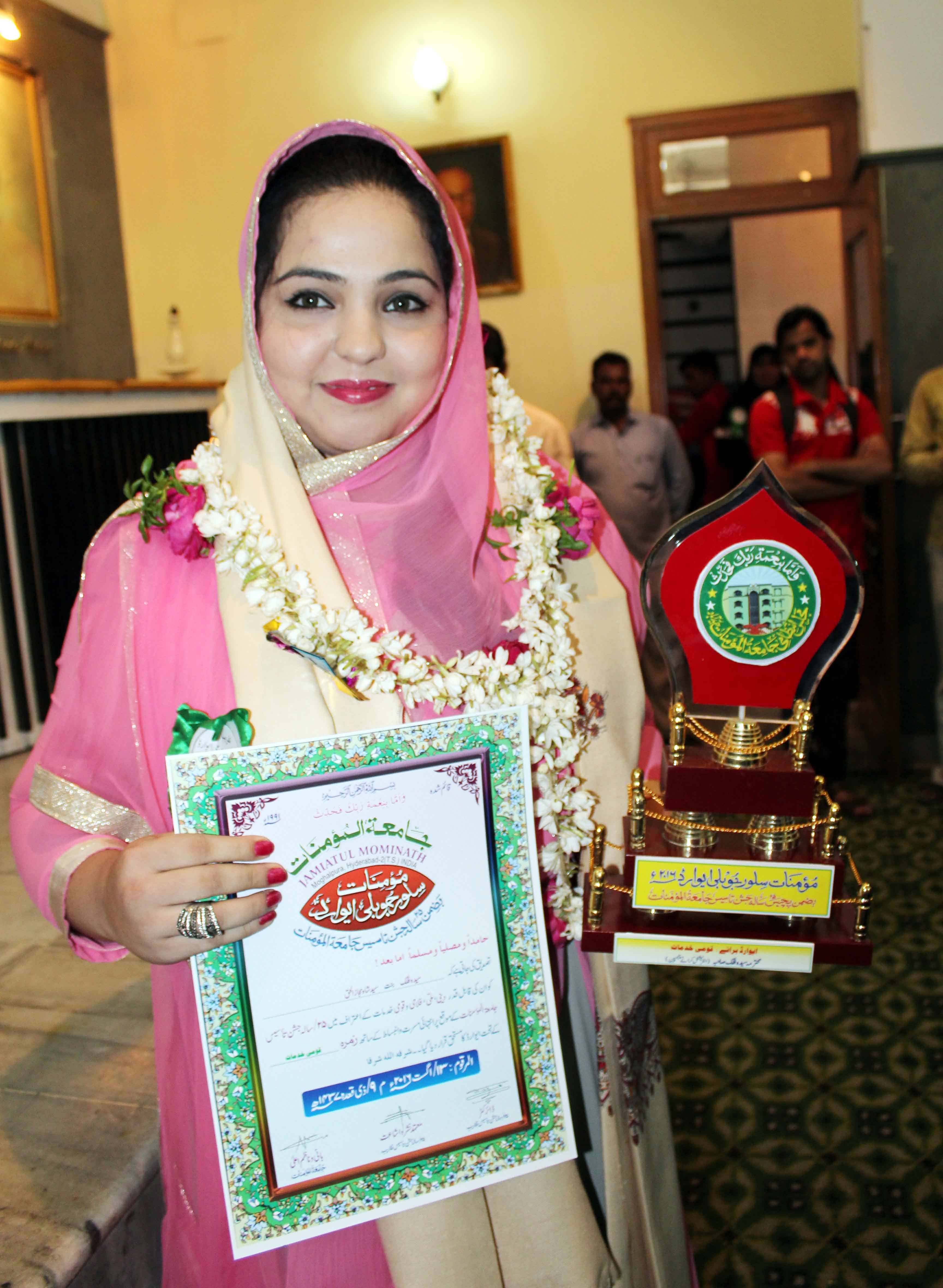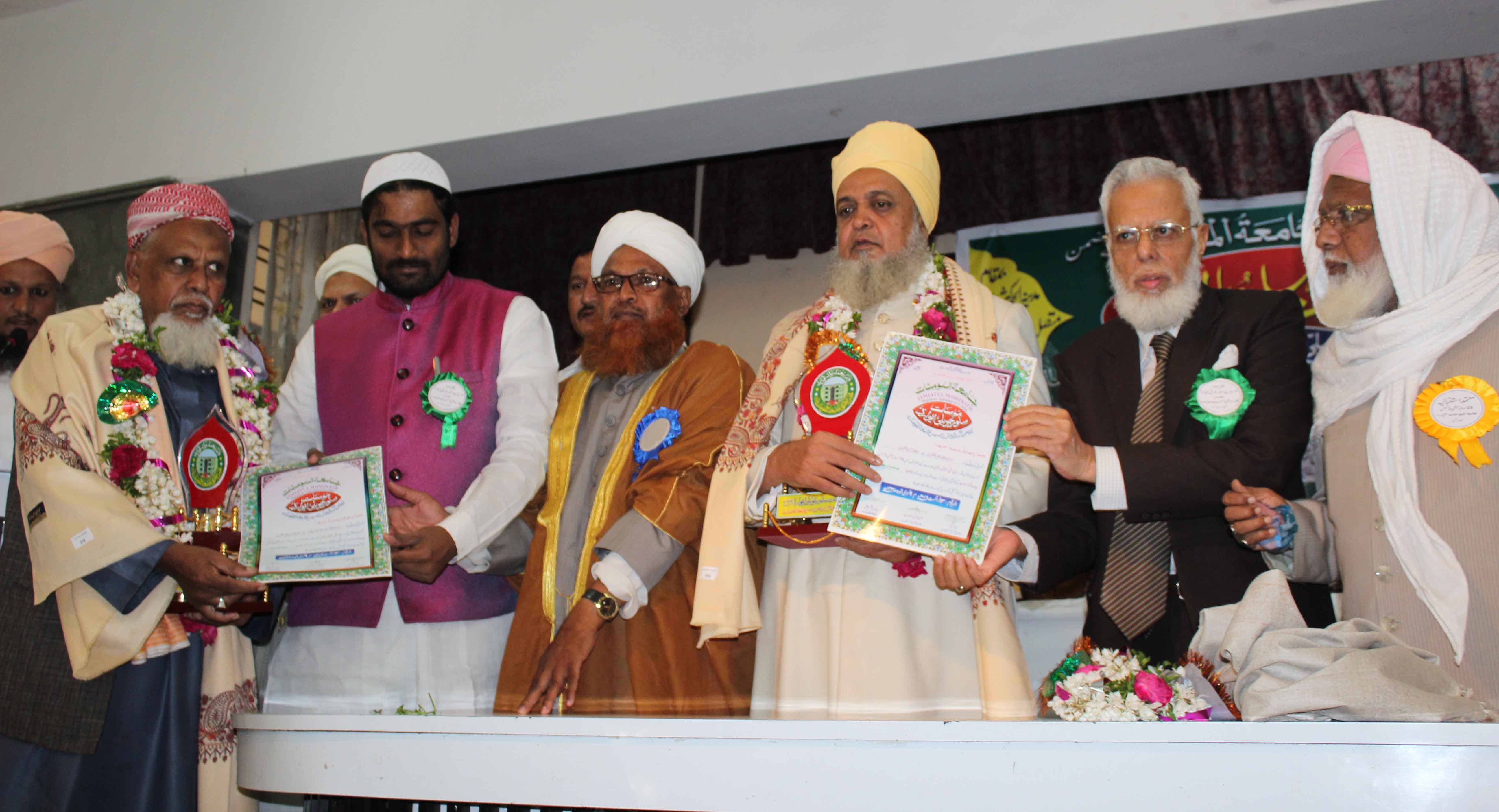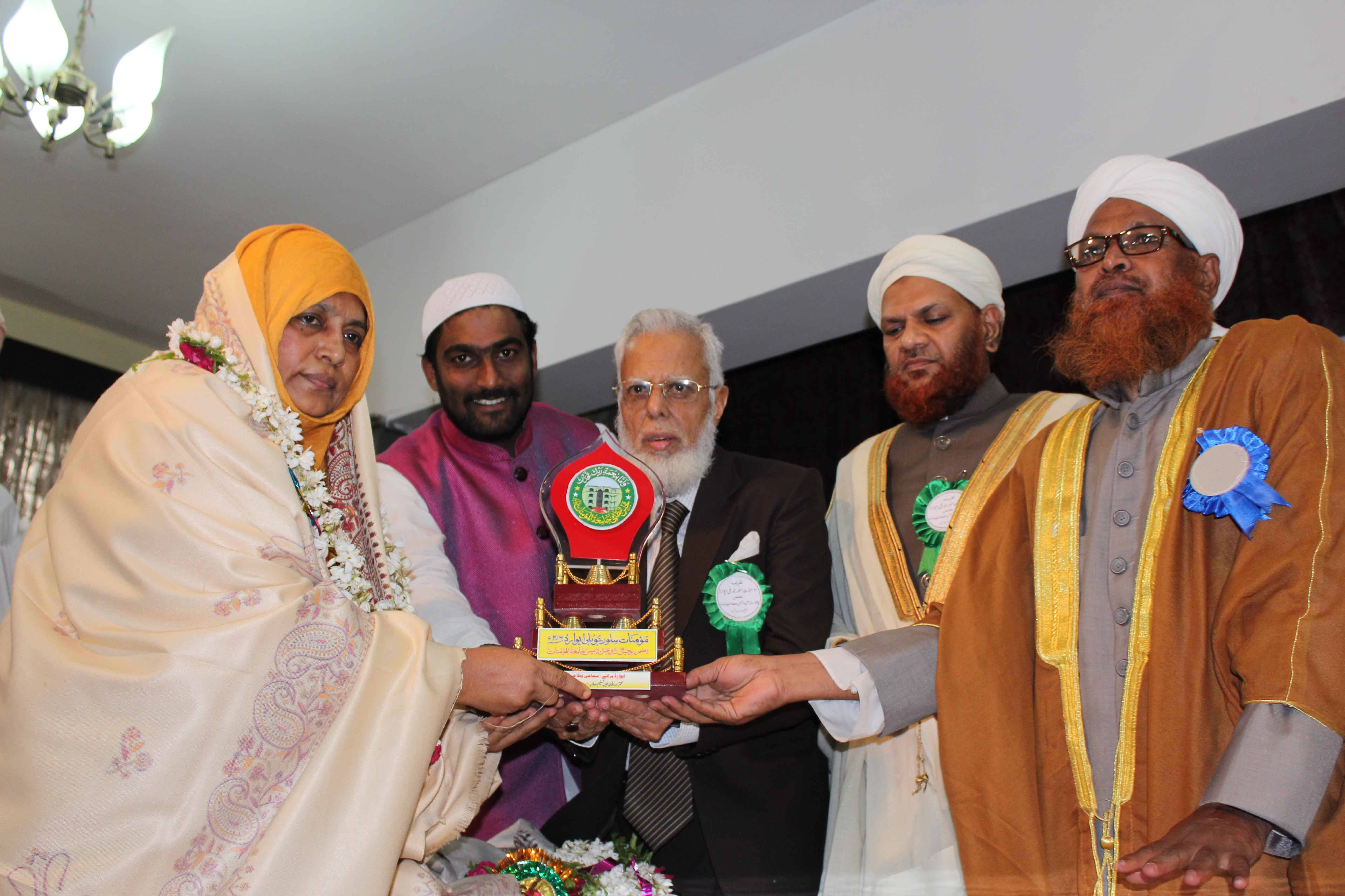 On the occasion of Jamait ul Mominath’s silver jubilee ceremony Deputy Mayor Baba Fasiuddin, Justice Ismail Ahmed, Abdul Waheed Adovacate, Moulana Osman Naqshbandi, Mohammed Qamaruddin Engineer, Syeda Falak, and many more dignitaries was felicitated and awarded by Moulana Syed Durvesh Mohiuddin also known as Murtuza Pasha, Syed Shah Noorul Haq Quadri and others at Madina Education Center. (Photo: Zabi)