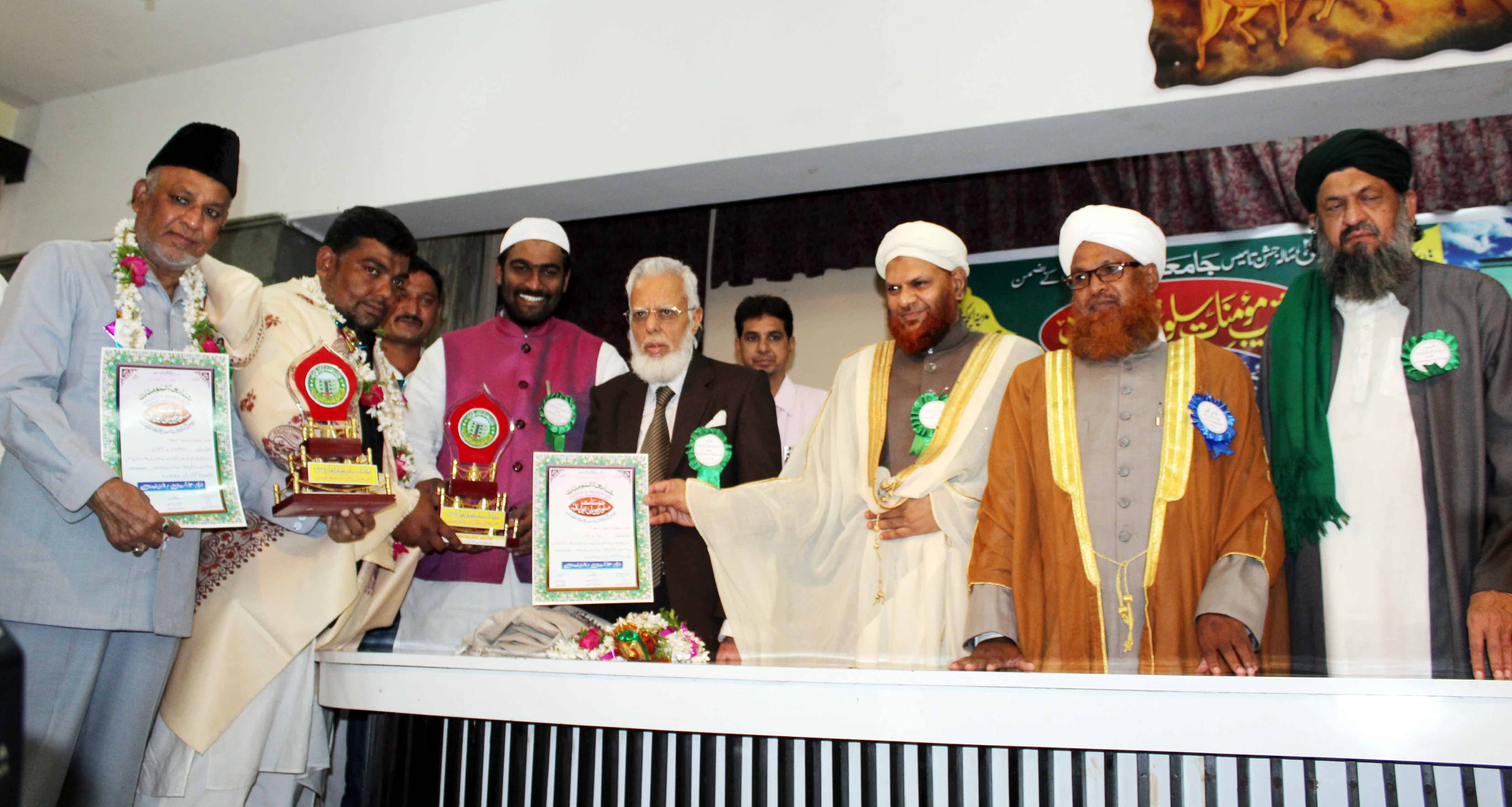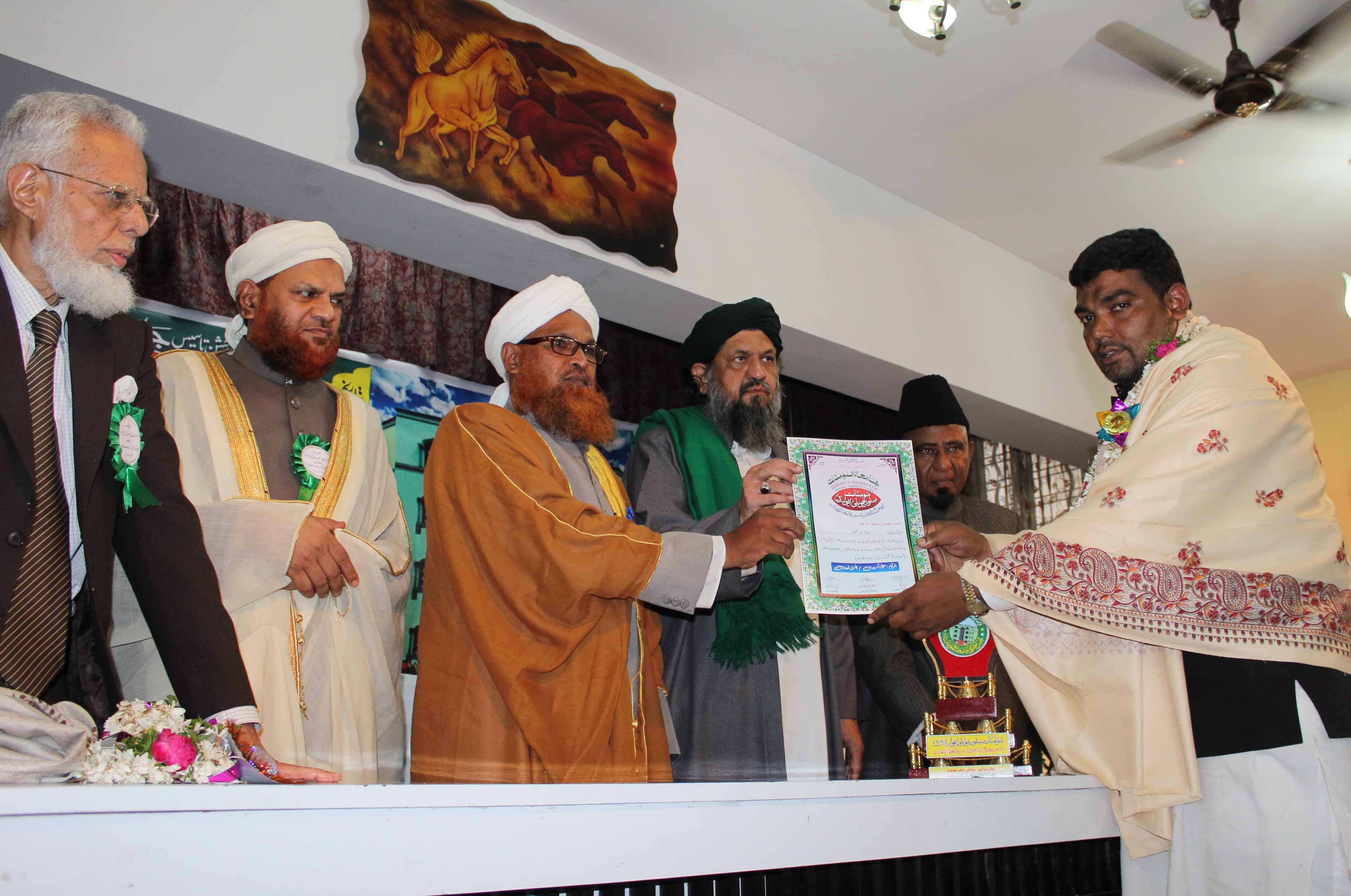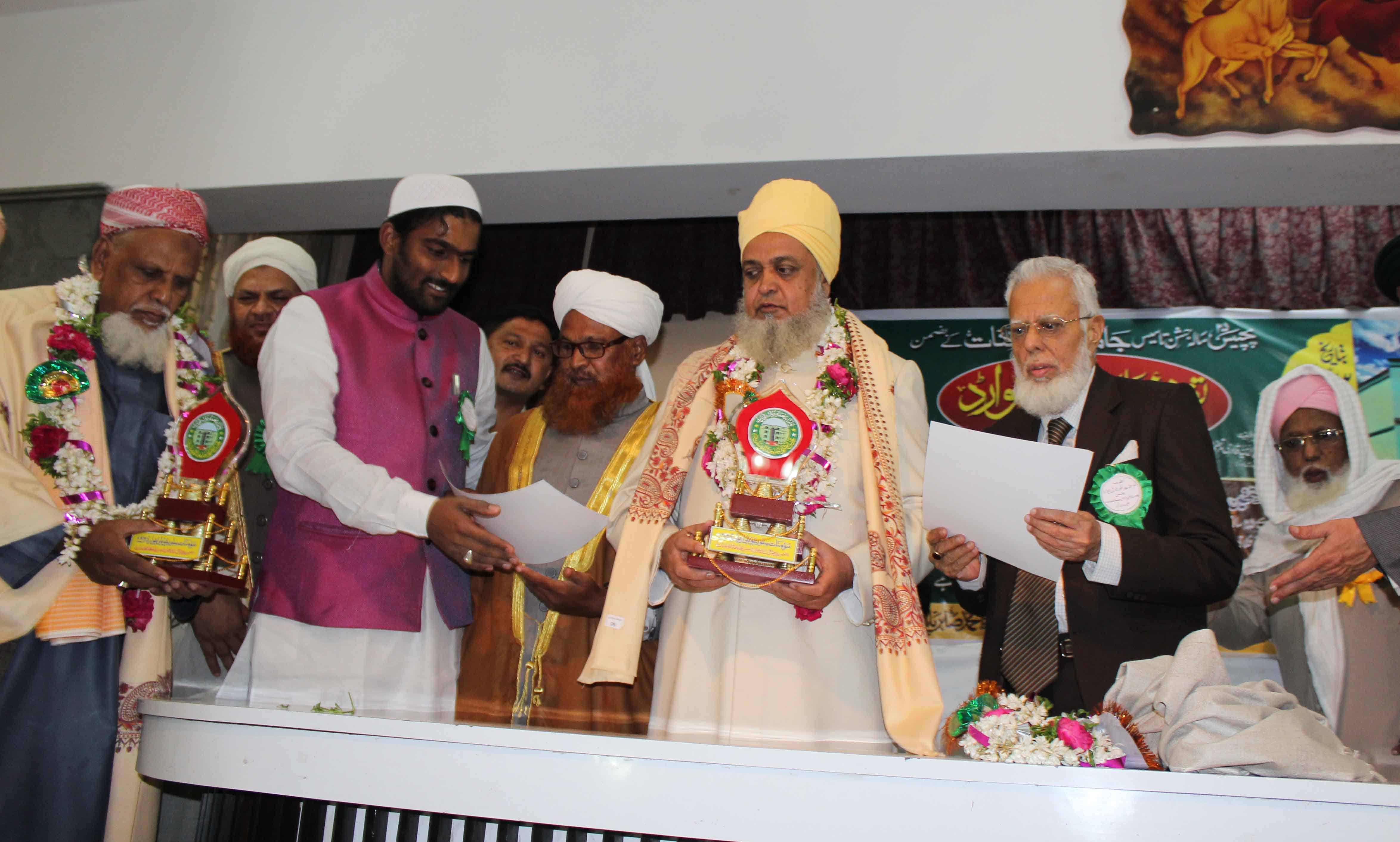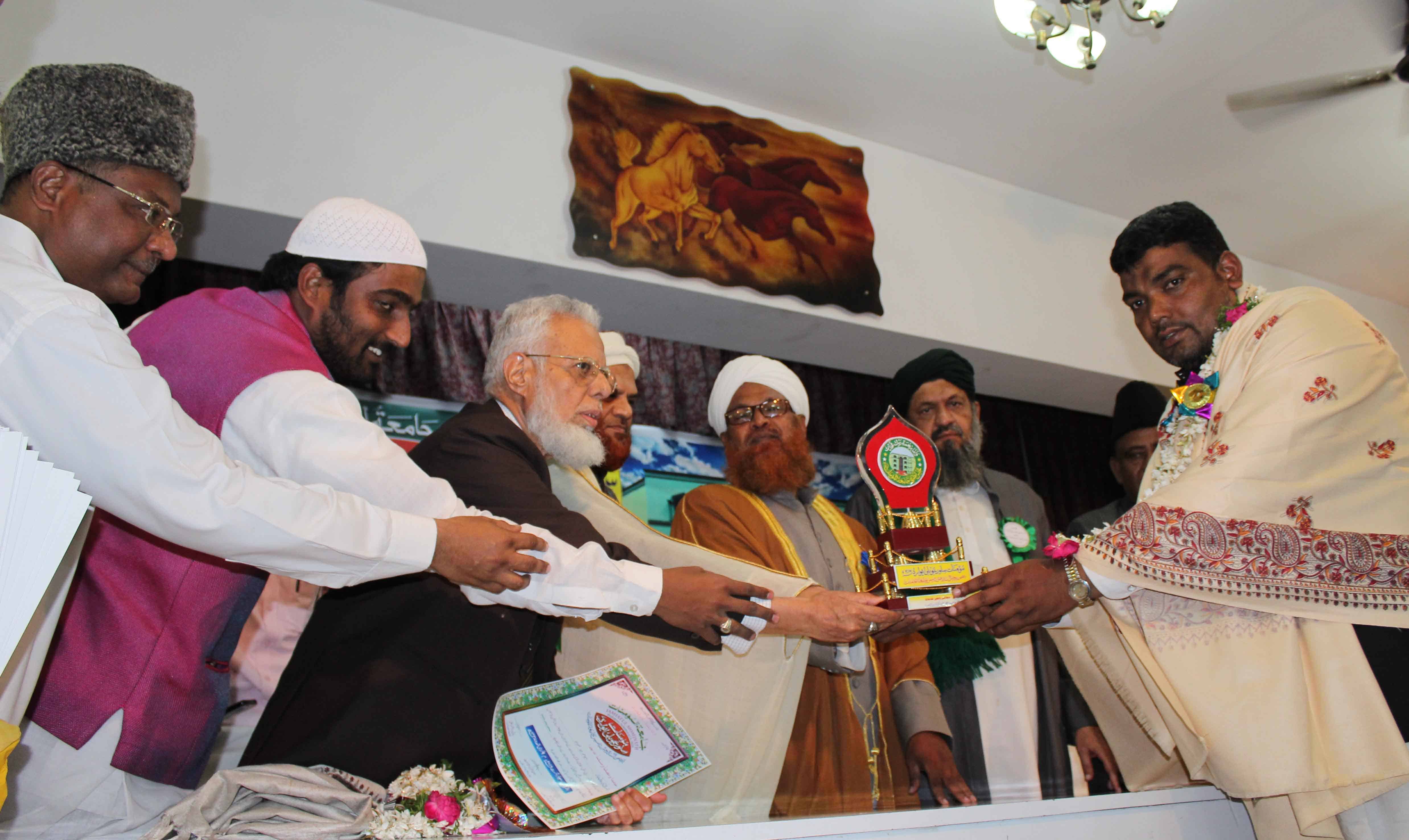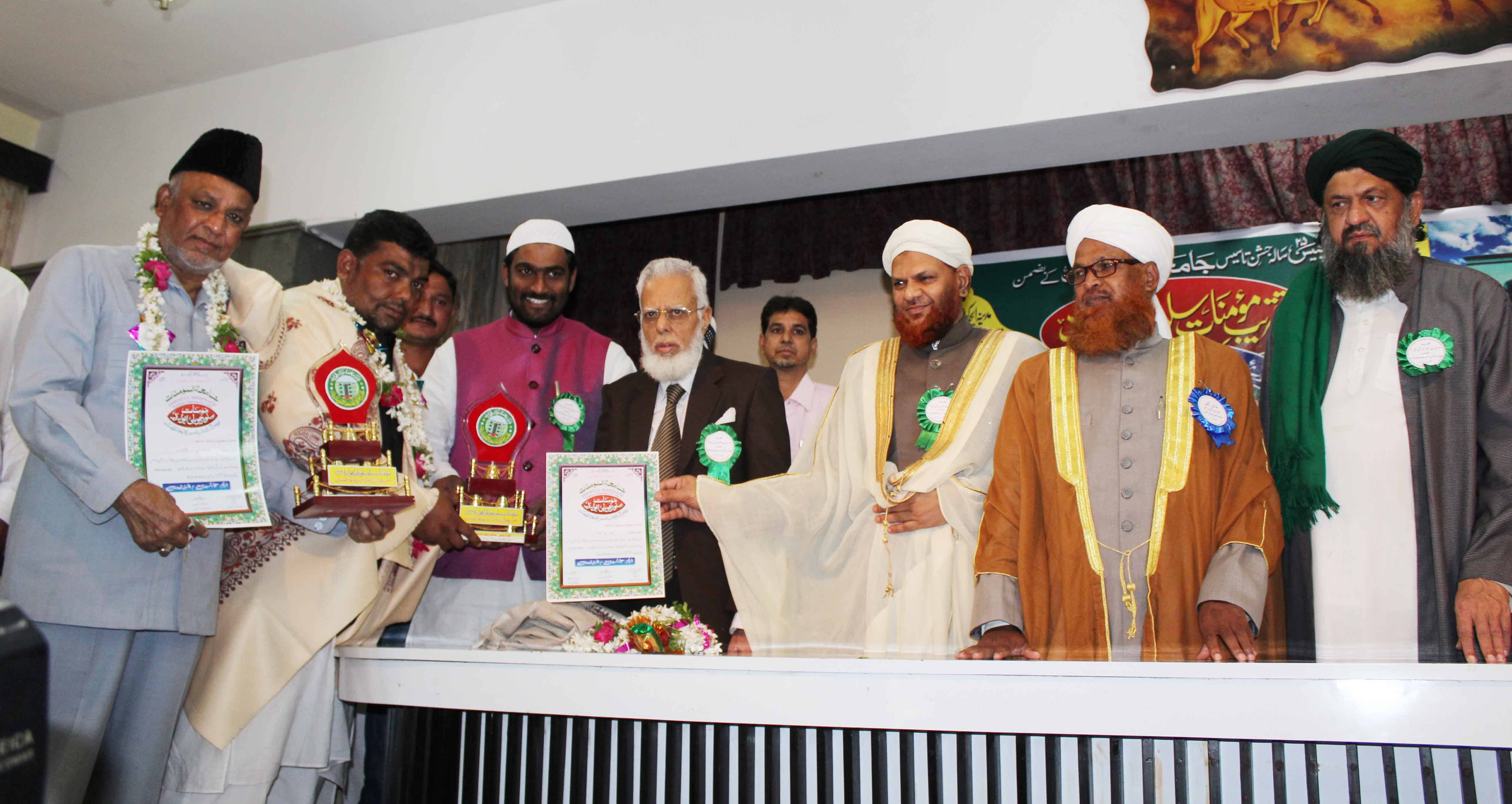 On the occasion of Jamait ul Mominath’s silver jubilee ceremony Deputy Mayor Baba Fasiuddin, Justice Ismail Ahmed, Abdul Waheed Adovacate, Moulana Osman Naqshbandi, Mohammed Qamaruddin Engineer, Syeda Falak, and many more dignitaries was felicitated and awarded by Moulana Syed Durvesh Mohiuddin also known as Murtuza Pasha, Syed Shah Noorul Haq Quadri and others at Madina Education Center. (Photo: Zabi)