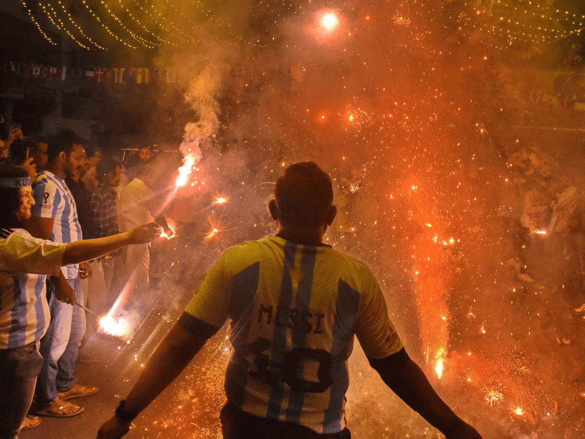 Kochi: Fans of Argentina’s football team celebrate the team’s victory in their final football match against France in the FIFA World Cup 2022, in Kochi, Sunday night, Dec. 18, 2022. (PTI Photo) Kolkata: Fans of Argentina’s football team celebrate the team’s victory in their final football match against France in the FIFA World Cup 2022, in Kolkata, Sunday night, Dec. 18, 2022. (PTI Photo) Kolkata: A fan of Argentina’s football team cheers while celebrating the team’s victory in their final football match against France in the FIFA World Cup 2022, in Kolkata, Sunday night, Dec. 18, 2022. (PTI Photo)Kochi: Fans of Argentina’s football team celebrate the team’s victory in their semifinal football match against Croatia in the FIFA World Cup 2022, in Kochi, Wednesday morning, Dec. 14, 2022. (PTI Photo) Kochi: Fans of Argentina’s football team celebrate the team’s victory in their semifinal football match against Croatia in the FIFA World Cup 2022, in Kochi, Wednesday morning, Dec. 14, 2022. (PTI Photo) Kozhikode: Fans of Argentina’s football team celebrate Argentina’s Lionel Messi’s first goal during their semifinal football match against Croatia in the FIFA World Cup 2022, in Kozhikode, Wednesday morning, Dec. 14, 2022. (PTI Photo) Kochi: Fans of Argentina’s football team celebrate the team’s victory in their semifinal football match against Croatia in the FIFA World Cup 2022, in Kochi, Wednesday morning, Dec. 14, 2022. (PTI Photo) Kolkata: Fans of Argentina’s football team celebrate the team’s victory in their final football match against France in the FIFA World Cup 2022, in Kolkata, Sunday night, Dec. 18, 2022. (PTI Photo)