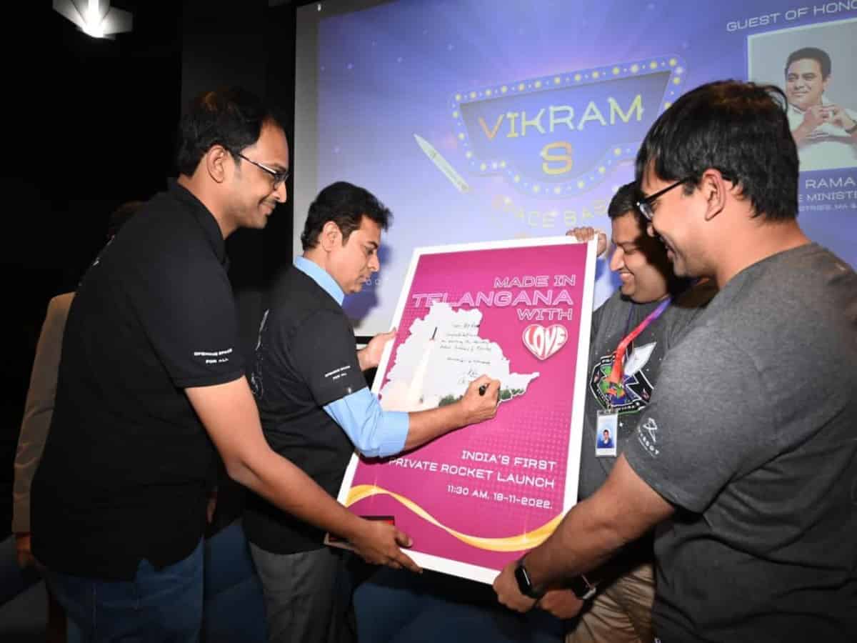 Congratulating the Skyroot team, Rama Rao expressed pride and happiness that a space tech company from Hyderabad broke all the barriers.