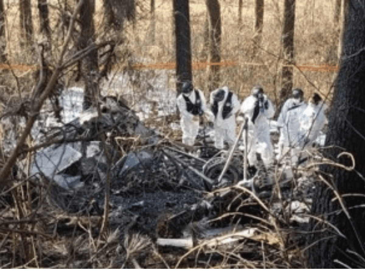 The helicopter made by US helicopter manufacturer Sikorsky was smashed into pieces and burst into flames, but the fire is unlikely to spread, as it has mostly been put out, they said.