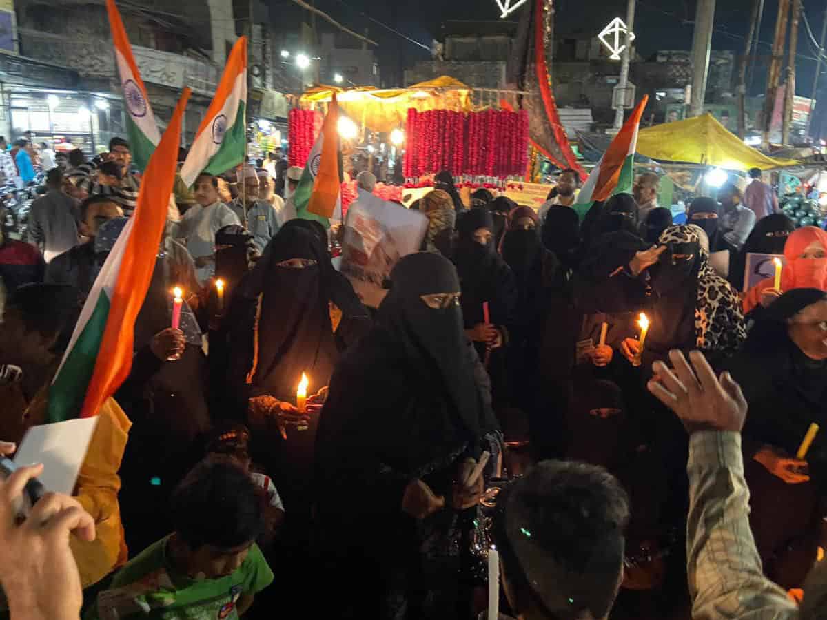 Candle-light protests were held at Toli Chowki, Seven Tombs Road, King Koti and Yakutpura. (Photo: Laeeq)