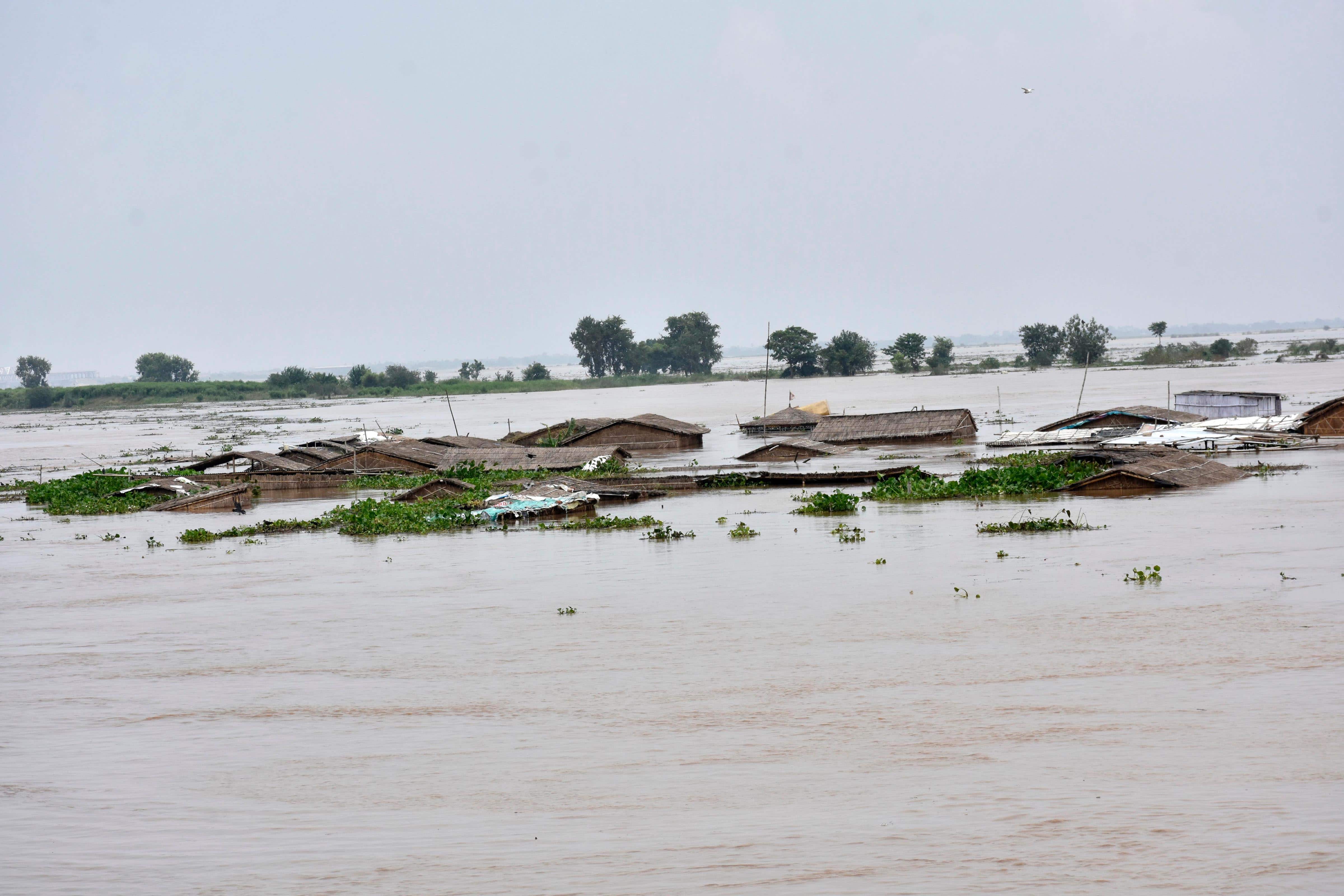 PATNA, AUG 20 (UNI):-Houses submerged with flood water,in Patna on Saturday. UNI PHOTO-68U