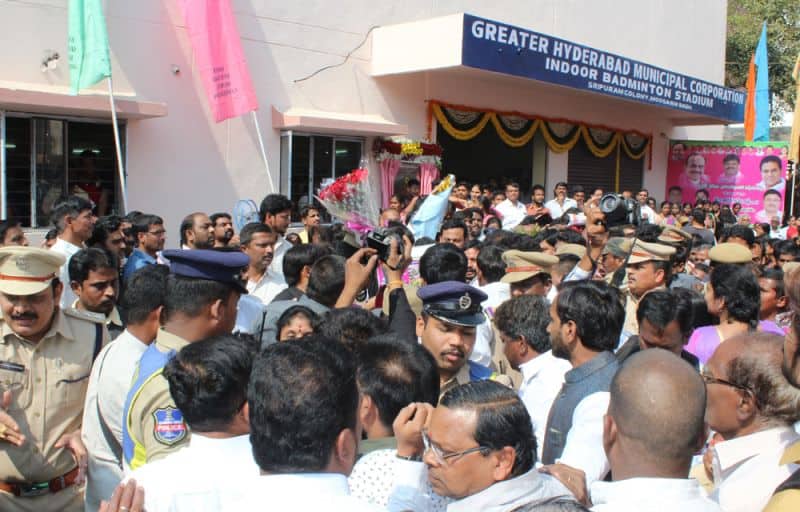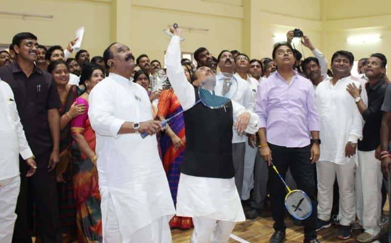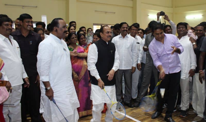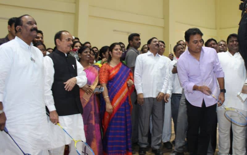State Municiple and Urban Development and IT Minister Mr. K T Rama Rao inugurated National Park for special needs at Nalgonda Crossroads, and Badminton Indoor Stadium at Moosaram Bagh on Friday. Deputy Chief Minsiter Alhaj Mohammed Mehmood Ali, State Home Minister Mr. N Narsihma Reddy, State Road and Transport Minisster Patnam Mahinder Reddy, Mayor Greater Hydrebad Mr. Bonthu Ram Mohan, Deputy Mayor Mr. Baba Fasiuddin, Disabled Board Chairmen Vasudeva Reddy and others can also be seen. (Photo: Zabi)