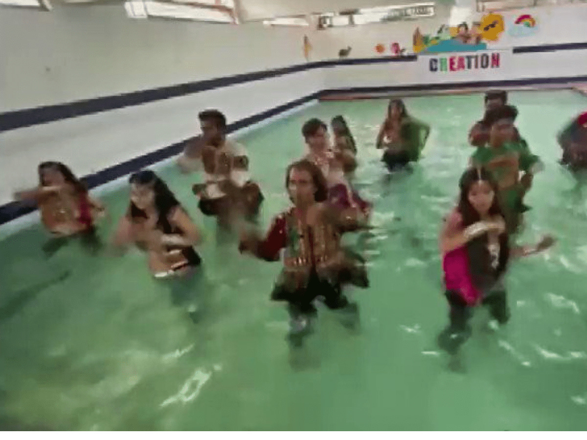 The members flaunted their dance skills in the swimming pool wearing heavy Garba outfits and jewellery, Isn’t it commendable?